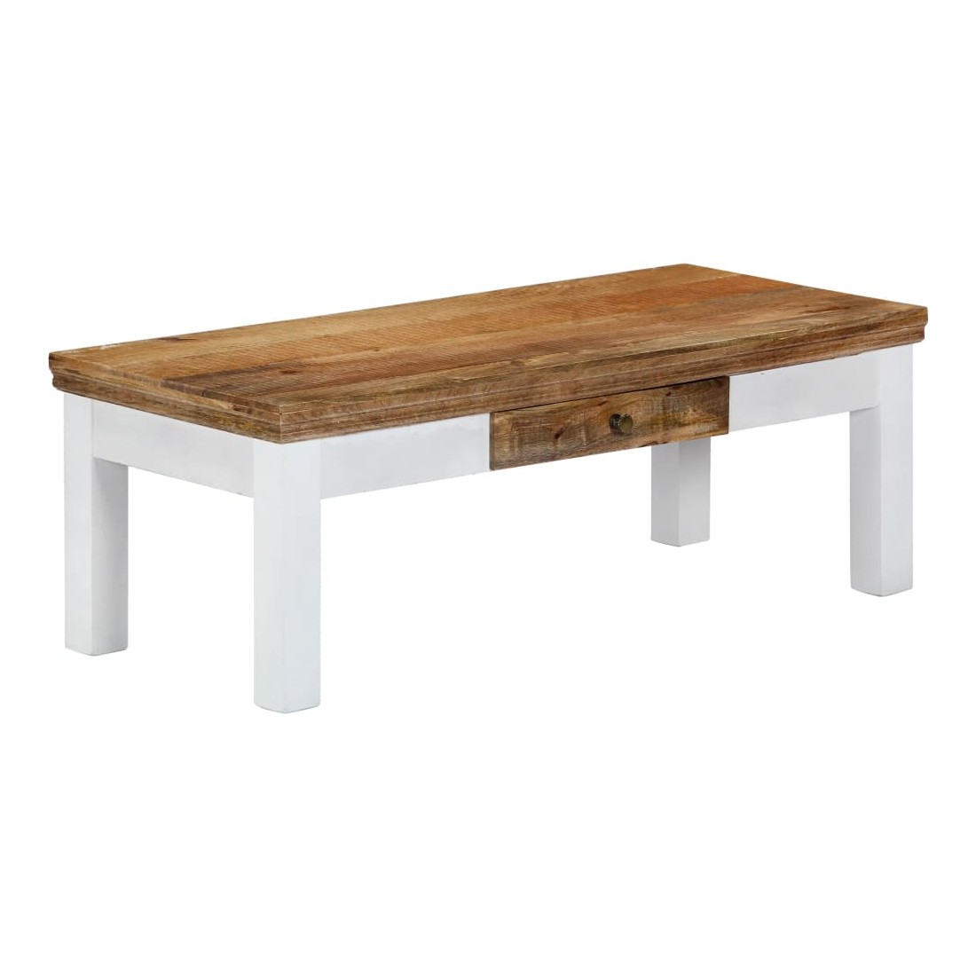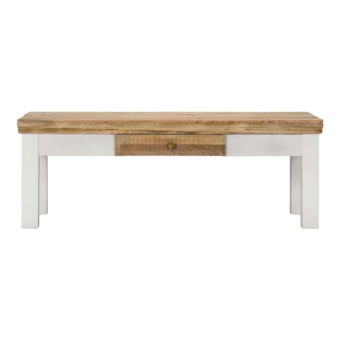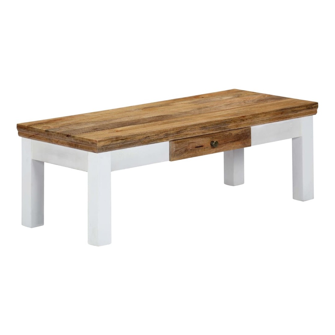 Présentant un charme rustique, cette superbe table basse en bois ajoutera une touche intemporelle à votre décoration. Son dessus de table solide offre une surface stable et sûre, sur laquelle vous pouvez placer des boissons, des vases, des coupes à fruits et autres ornements. Cette table basse pratique sera parfaite pour ranger des appareils multimédia, des livres, des magazines ou des petits articles que vous aimeriez garder à portée de main. Grâce à sa construction robuste et au matériau en bois de manguier, la table est extrêmement durable. Le bois de manguier est un bois dur dense et robuste qui a des belles stries et des contours marron ou doré sur sa surface. Chaque étape du processus est réalisée avec le plus grand soin, qu'il s'agisse du polissage, de la peinture ou du laquage. Détendez-vous et passez du bon temps avec votre famille et vos amis autour de cette table basse unique ! Note importante : Les couleurs varient d'une pièce à l'autre, ce qui rend chaque pièce unique. La livraison est aléatoire, ce qui garantit l'exclusivité et l'individualité de votre produit.