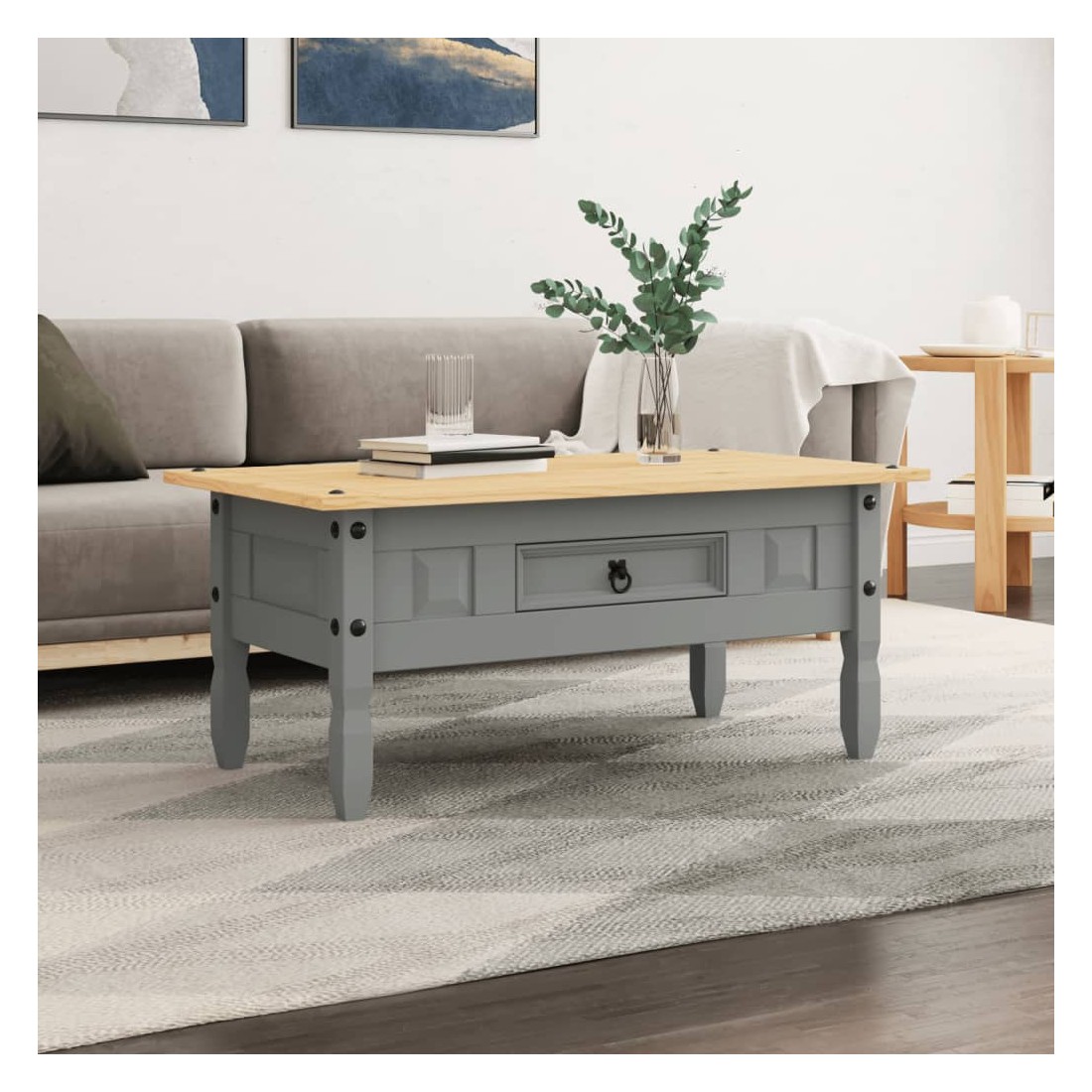 Cette table basse en bois de haute qualité est un meuble dans le style «Corona» mexicain. Le pin ciré dégage un charme rustique mexicain qui fera de la table d'appoint un excellent ajout à votre salle de séjour ou salon. Fabriquée en pin massif, la table d'appoint est solide et robuste. Le dessus de table solide offre une surface stable et sécurisée sur laquelle vous pouvez placer vos boissons, un panier de fruits ou un vase ou d'autres objets décoratifs. Elle dispose d'un tiroir pour ranger des bibelots, des journaux et d'autres articles utiles. L'assemblage est facile.