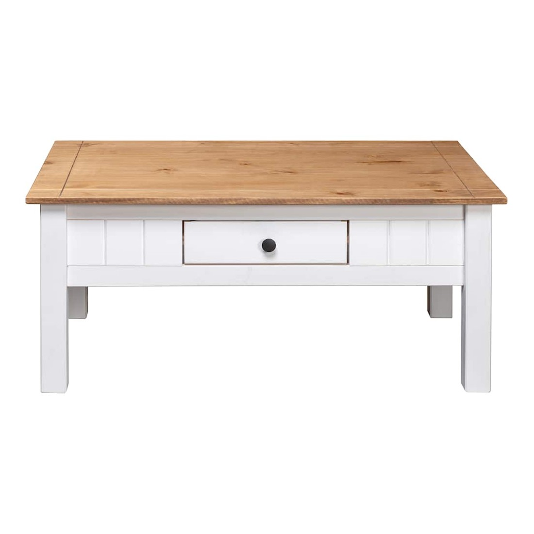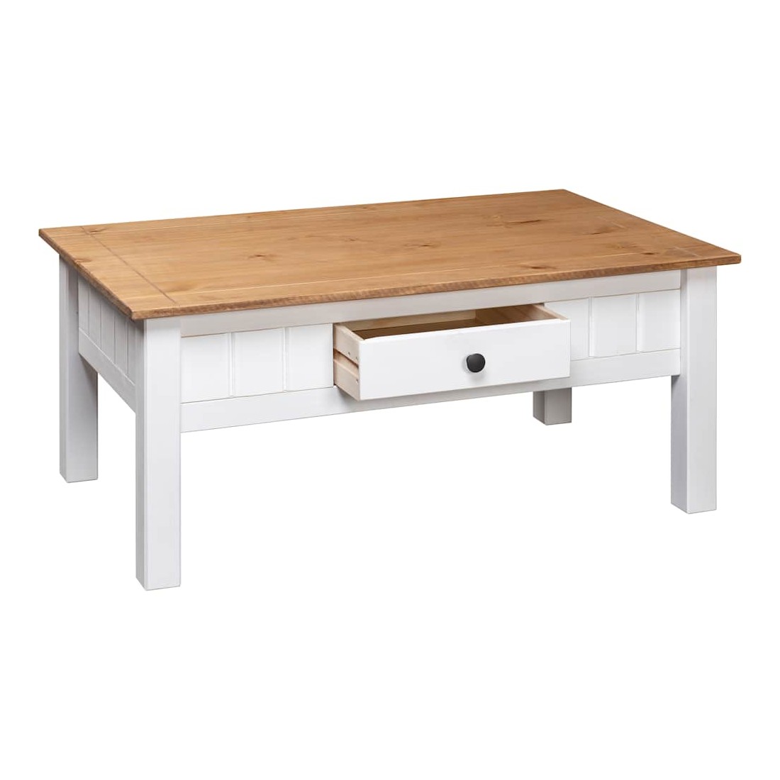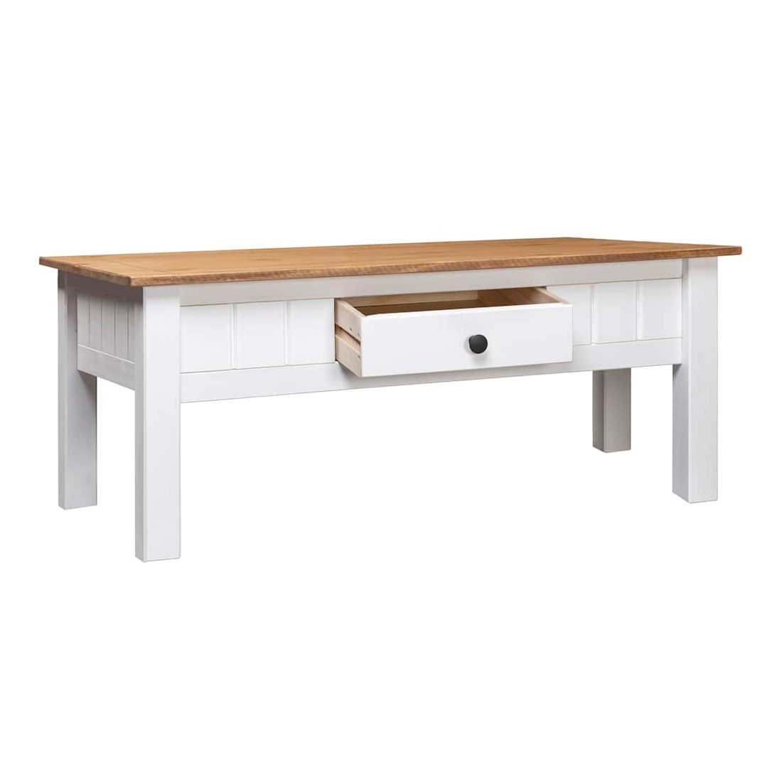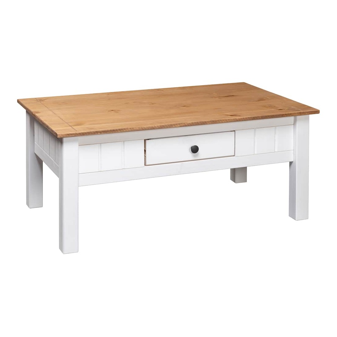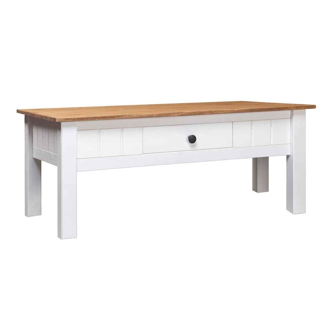 Cette table basse classique en bois sera un supplément indémodable à votre décoration intérieure. La table de canapé est fabriquée en bois de pin massif, ce qui la rend extrêmement robuste et durable. Cette table basse est équipée d'un tiroir pour garder vos magazines, livres, télécommande et autres petits objets à portée de main. La table d'appoint est facile à assembler.