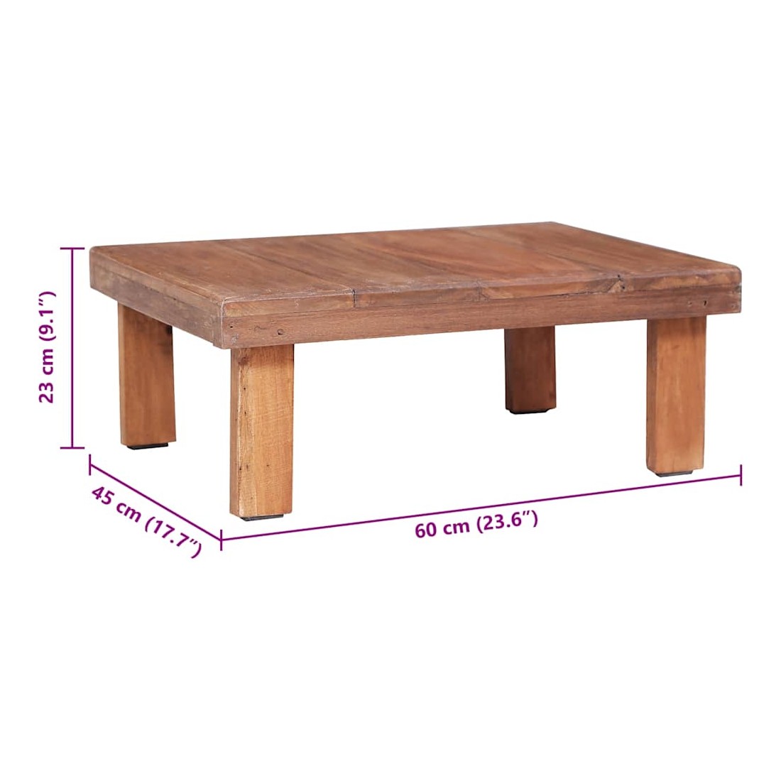 Cette table basse intemporelle en bois sera un supplément distinctif à votre décoration d'intérieur. Fabriquée en bois massif d'acajou, cette table basse en bois massif est extrêmement durable et robuste. L'acajou est un bois dur tropical qui se distingue par sa beauté, sa durabilité et sa couleur. Un savoir-faire spécial a été utilisé pour donner à cet article un aspect vintage, chaleureux et authentique. Le produit est entièrement fait à la main et chaque étape du processus est réalisée avec le plus grand soin, qu'il s'agisse du polissage, de la peinture ou du laquage. Le dessus de table solide offre une surface stable et sécurisée sur laquelle vous pouvez placer des boissons, un panier de fruits, un vase ou d’autres objets décoratifs. De plus, la table basse peut également être util