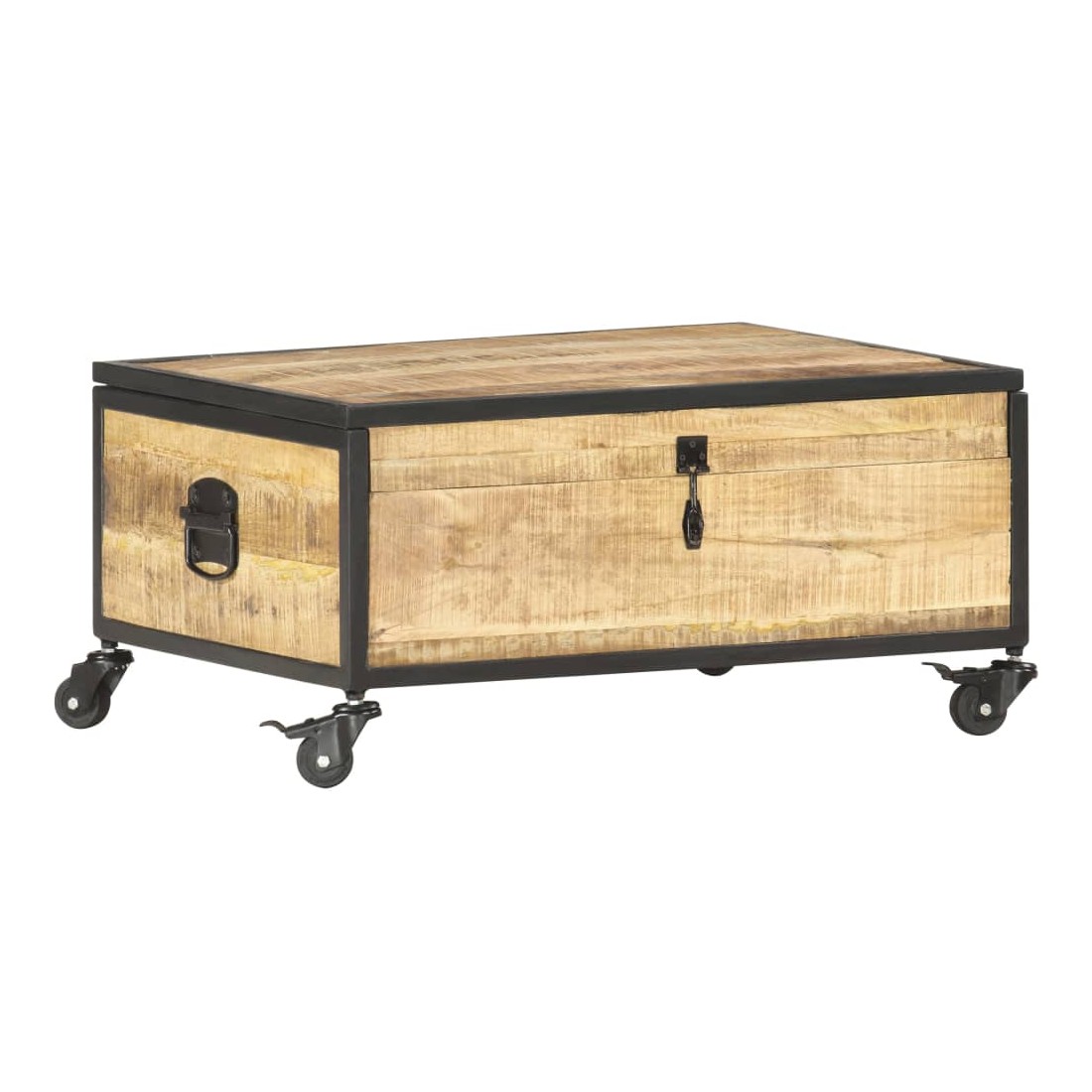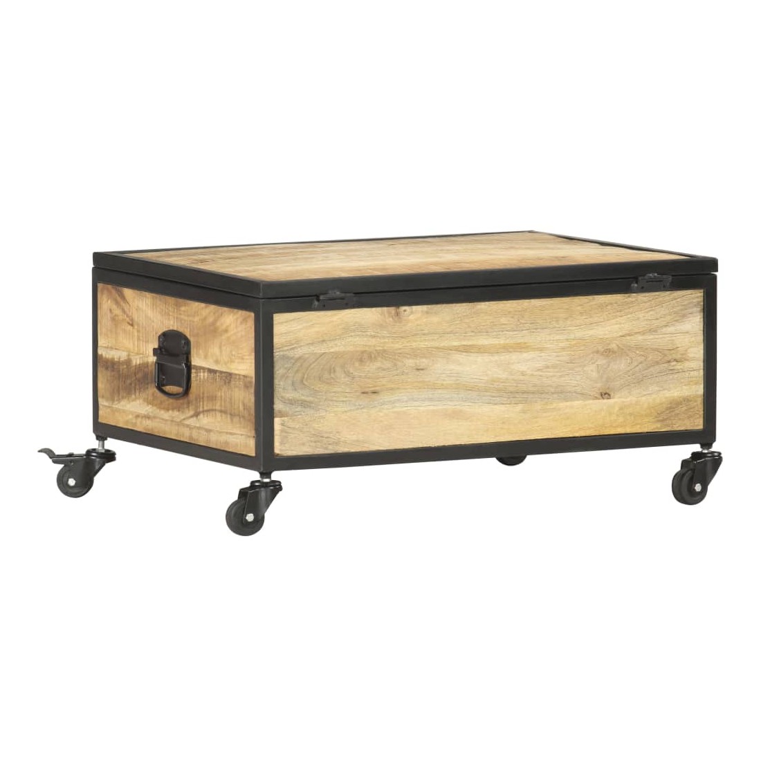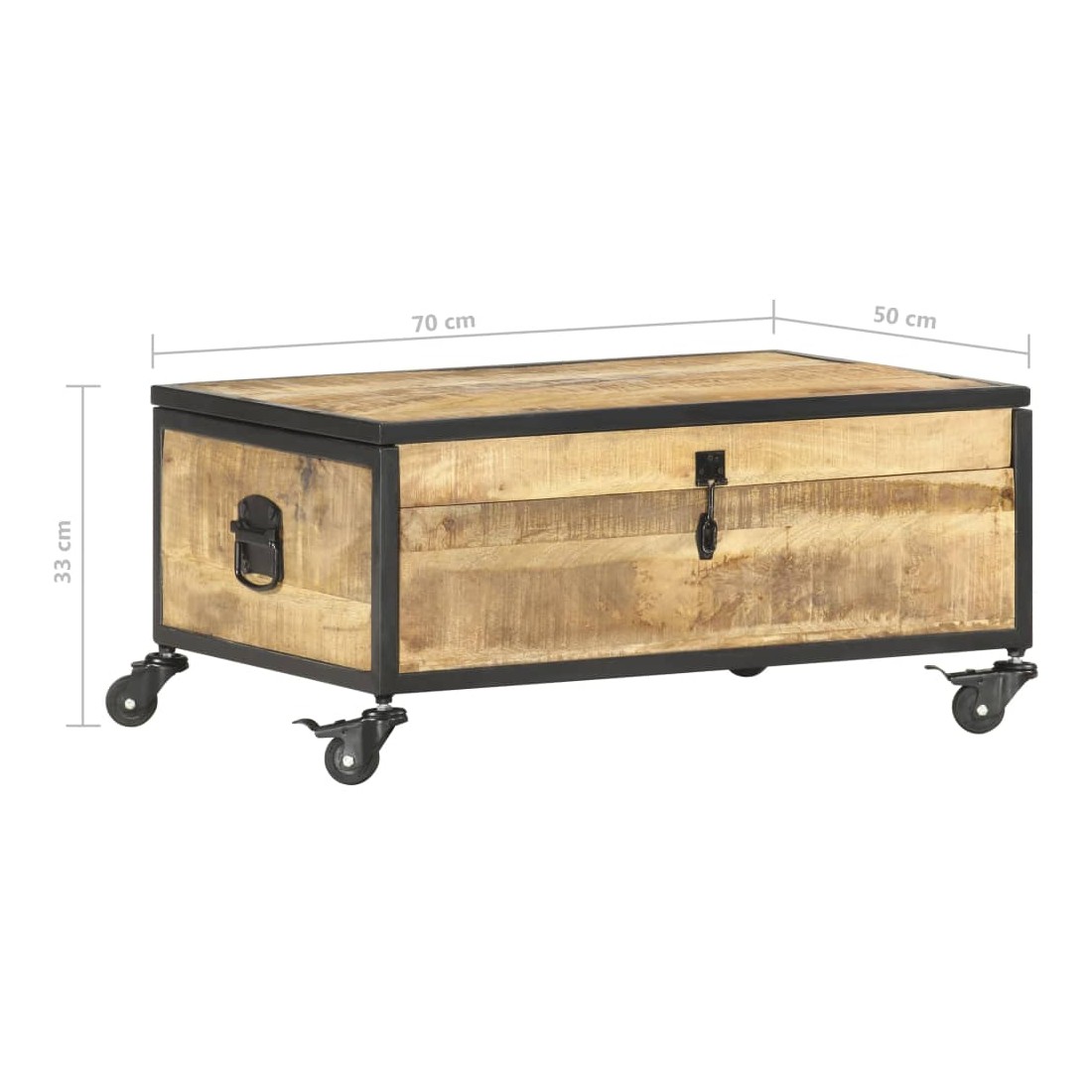 Cette table passe sur quatre roues sera un ajout unique à votre pièce. Sa construction en bois massif la rend stable et fiable adaptée pour y poser des verres, des paniers de fruits ou des objets décoratifs. La table basse peut également être facilement déplacée dans toute la maison grâce à ses quatre roues en acier flexibles. Grâce à la construction robuste et au bois de manguier, la table est extrêmement solide et durable. Le bois de manguier est un bois dur dense et robuste qui présente des belles stries et des contours bruns ou dorés à la surface. Chaque étape du processus est réalisée avec le plus grand soin, que ce soit le polissage, la peinture ou le laquage. Avec 1 porte escamotable, la table dispose d'un grand espace de rangement, idéal pour placer des appareils multimédia, de