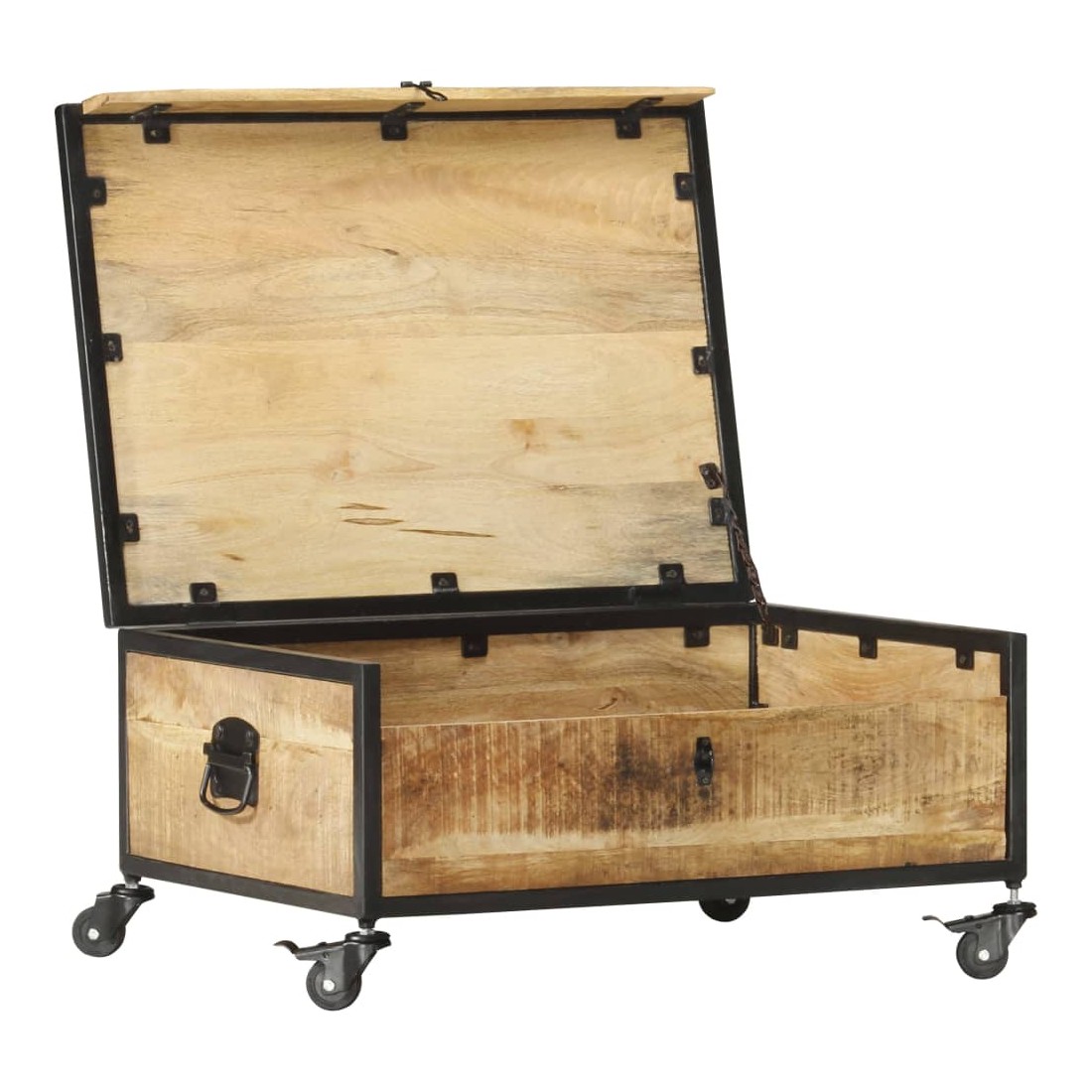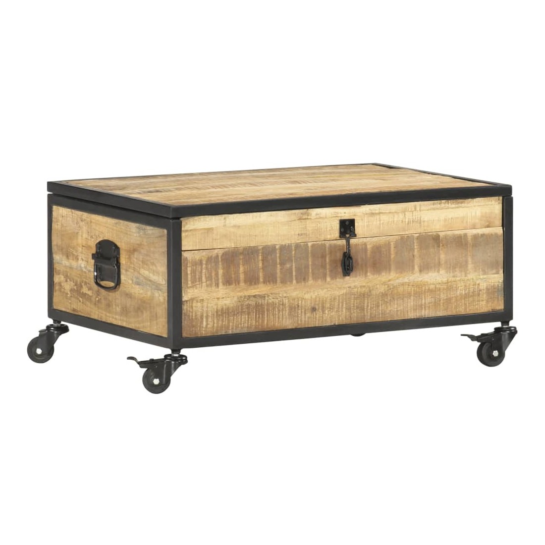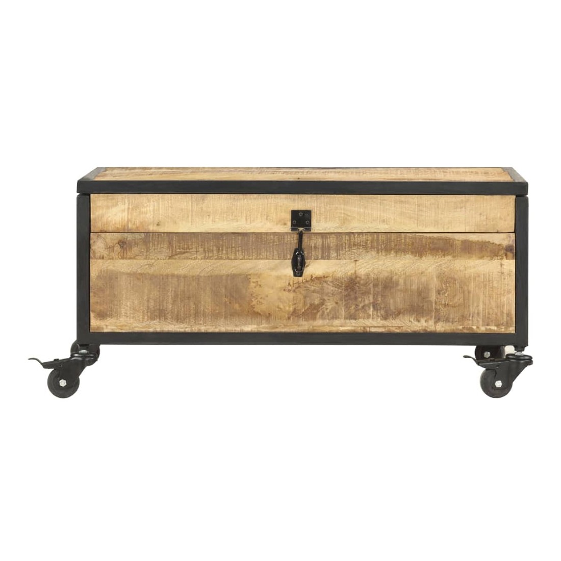 Cette table passe sur quatre roues sera un ajout unique à votre pièce. Sa construction en bois massif la rend stable et fiable adaptée pour y poser des verres, des paniers de fruits ou des objets décoratifs. La table basse peut également être facilement déplacée dans toute la maison grâce à ses quatre roues en acier flexibles. Grâce à la construction robuste et au bois de manguier, la table est extrêmement solide et durable. Le bois de manguier est un bois dur dense et robuste qui présente des belles stries et des contours bruns ou dorés à la surface. Chaque étape du processus est réalisée avec le plus grand soin, que ce soit le polissage, la peinture ou le laquage. Avec 1 porte escamotable, la table dispose d'un grand espace de rangement, idéal pour placer des appareils multimédia, de