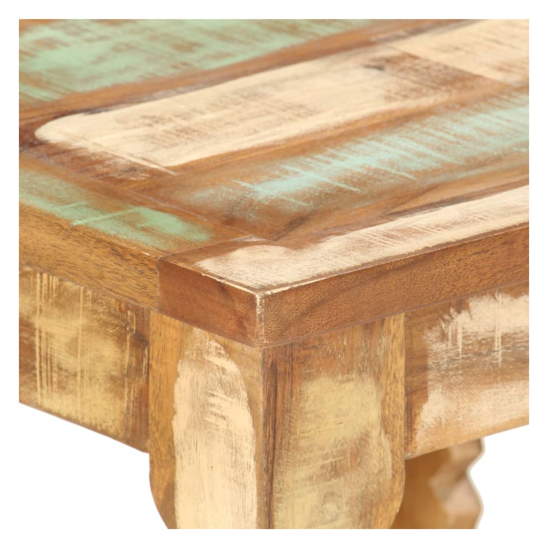 Cette table basse en bois de récupération de style antique est un accessoire attrayant et intemporel pour votre maison. Son dessus de table en bois massif offre une surface stable et sécurisée pour poser vos verres, vases, ornements de fruits, etc. Cette table basse exotique est fabriquée à partir de bois recyclé, ce qui signifie que chaque meuble est unique et légèrement différent de l'autre. Les meubles en bois de récupération présentent les caractéristiques de différents bois comme le teck, l'acacia, le bois de manguier, etc. Cette table basse est conçue avec un concept de conservation des ressources, de protection de l'environnement et de développement durable. En outre, l'artisanat classique fait à la main ajoute le style vintage spectaculaire à la table basse, ce qui en fait un d