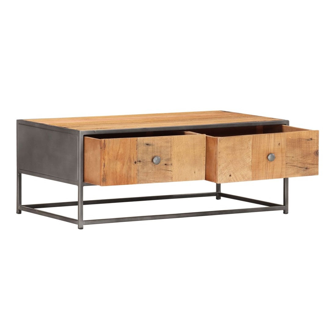 vidaXLCette table basse en bois de style industriel dégage un charme vintage et sera un supplément intemporel à votre maison. La table basse peut également être utilisée comme bout de canapé, table de salon, table d'appoint, table de chevet, support pour plantes ou support pour téléphone. La table basse est faite à la main en bois de récupération solide qui est solide, durable et beau, et a les caractéristiques de différents bois tels que le teck, le bois de manguier, l'acacia, le bois recyclé, le bois dur, etc. Chaque étape du processus est réalisée avec le plus grand soin, que ce soit le polissage ou le laquage, et l'artisanat ajoute au style rétro spectaculaire. Les beaux grains de bois rendent chaque meuble unique et légèrement différent l'un de l'autre. Remarque importante : les couleurs varient d'un meuble à l'autre, rendant chacune de nos tables basses unique. La livraison est aléatoire, ce qui garantit l'exclusivité et l'individualité de votre produit.