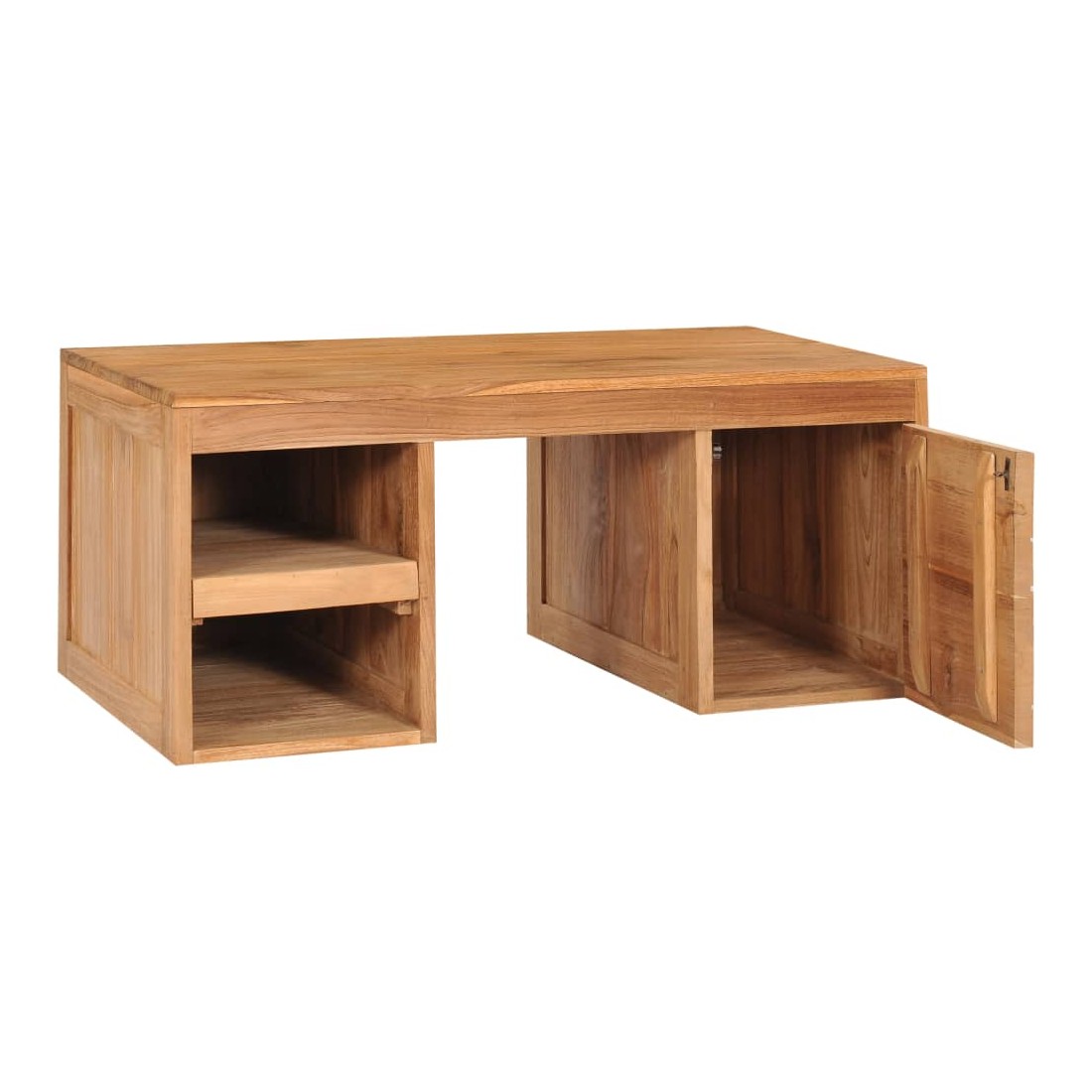 Dotée d'un design à la fois pratique et tendance, cette table basse en bois de style colonial est conçue pour être le point de mire de votre pièce. Cette table basse rustique est fabriquée en bois de teck massif, ce qui lui confère un support solide et durable. La finition à l'huile naturelle conserve une surface lisse, ce qui la rend difficile à rayer et facile à entretenir. Elle dispose d'une armoire à droite pour ranger les bibelots et de deux compartiments ouverts à gauche pour ranger les appareils multimédias, les consoles de jeu, les CD et les magazines, etc.