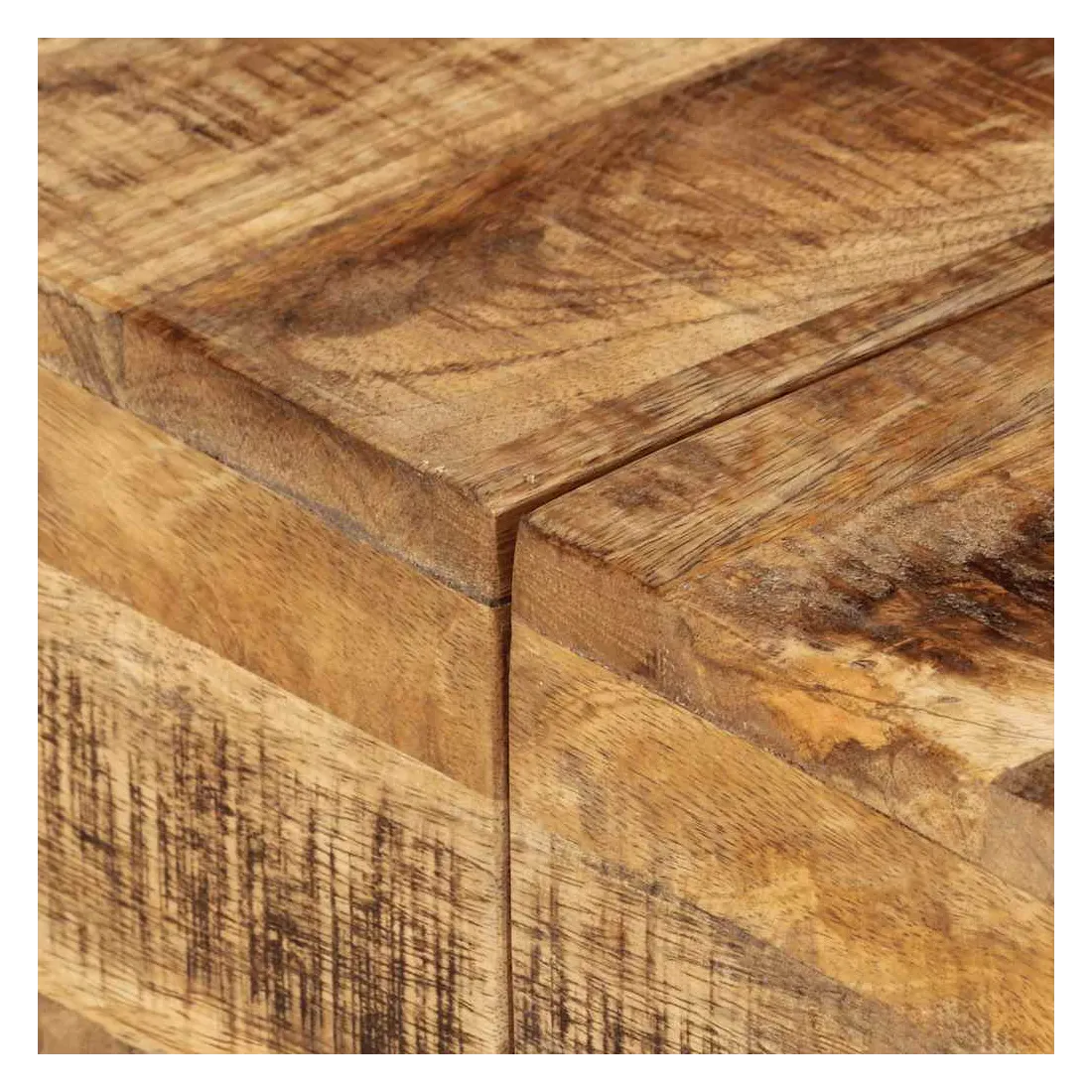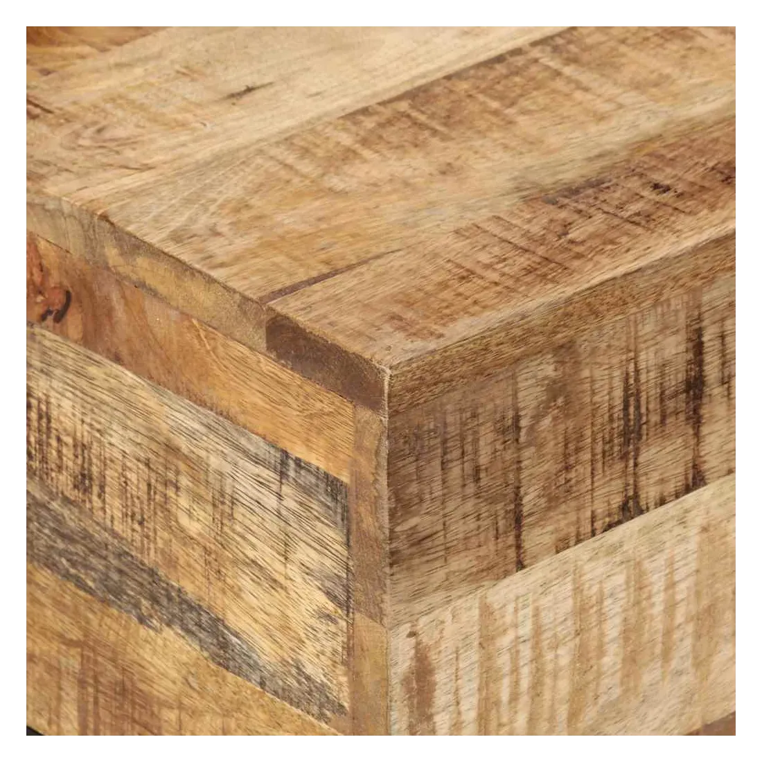- Matériau : bois de manguier solide avec finition naturelle, fer enduit de poudre noire