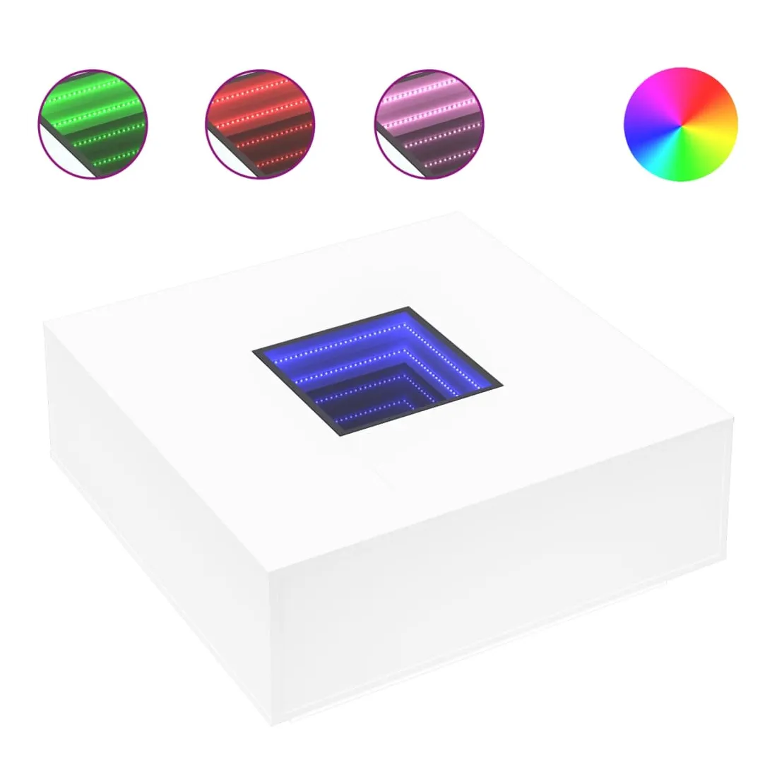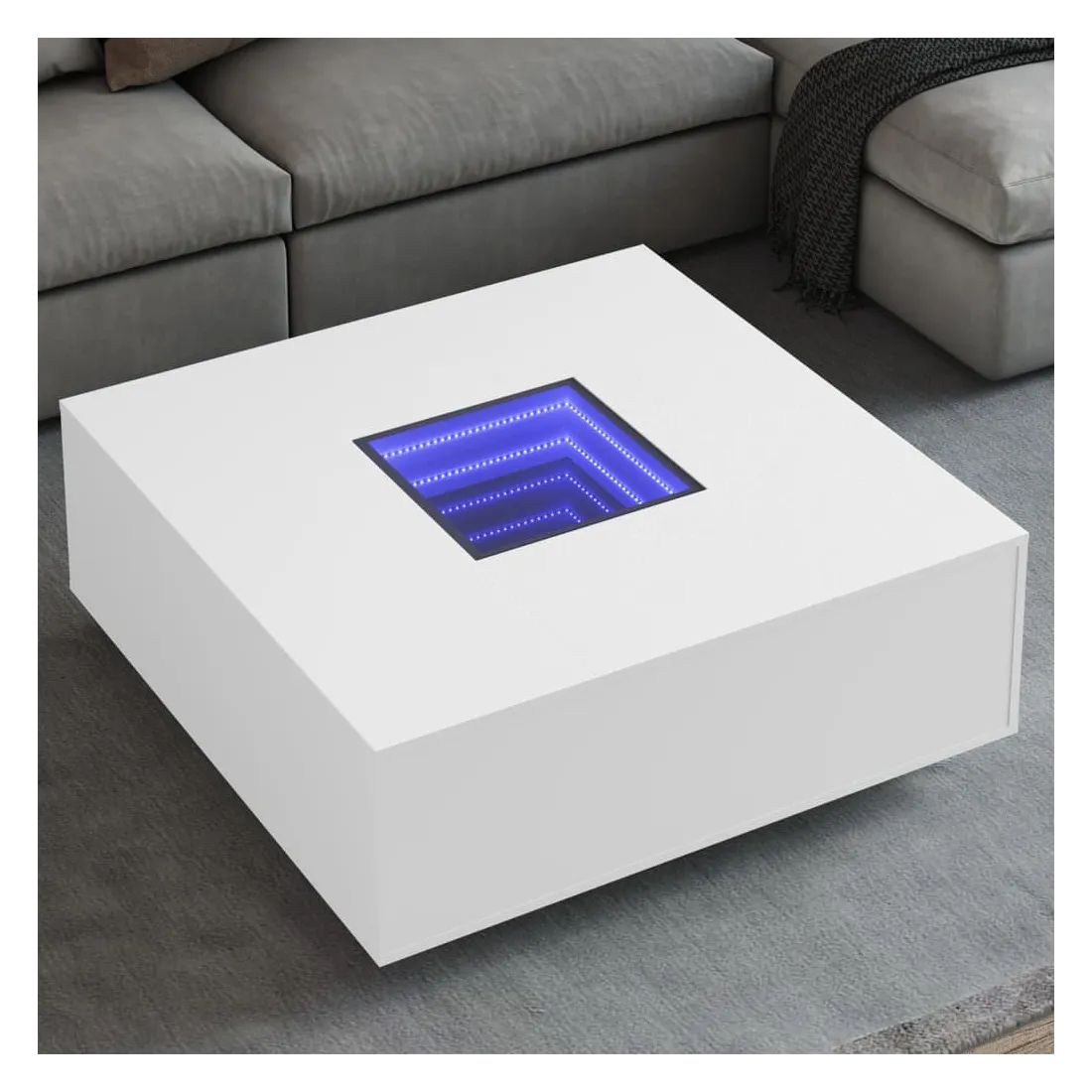 Cette table basse unique dotée d'un miroir à LED infini est adaptée à différents endroits. Matériau stable et durable : le bois d'ingénierie est un matériau durable et stable dont la surface lisse résiste à l'humidité, à la déformation et au fendillement, ce qui en fait un choix fiable pour une grande variété de projets.Lampes LED RVB pour une ambiance agréable : cette table est dotée de lampes LED qui peuvent être facilement réglées pour créer un spectacle lumineux personnalisé. Vous pouvez personnaliser les modes, les couleurs et la luminosité pour améliorer l'ambiance de votre espace intérieur.Dessus de table stable et robuste : le dessus de table robuste est idéal pour placer vos boissons ou tout autre objet nécessaire à portée de main.Multifonctionnelle : cette table basse a de multiples fonctions. Elle peut servir de table d'appoint, de table d'extrémité ou de table de chevet dans votre salon ou votre chambre à coucher, répondant ainsi à vos besoins spécifiques. Bon à savoir :Ce produit est doté d'un connecteur USB qui nécessite une source d'alimentation USB de 5V certifiée (non incluse).