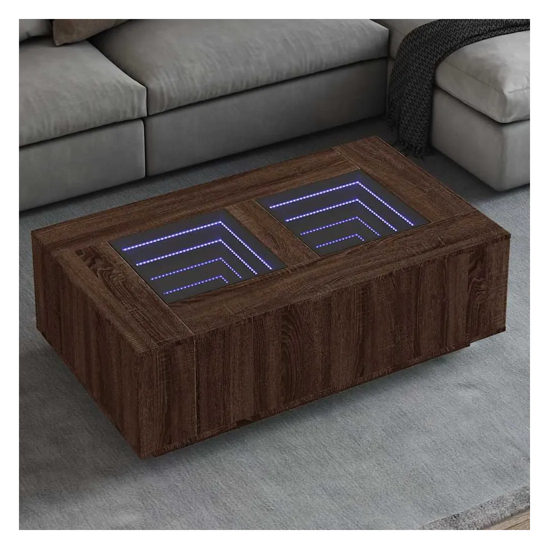 Cette table basse unique dotée d'un miroir à LED infini est adaptée à différents endroits. Matériau stable et durable : le bois d'ingénierie est un matériau durable et stable dont la surface lisse résiste à l'humidité, à la déformation et au fendillement, ce qui en fait un choix fiable pour une grande variété de projets.Lampes LED RVB pour une ambiance agréable : cette table est dotée de lampes LED qui peuvent être facilement réglées pour créer un spectacle lumineux personnalisé. Vous pouvez personnaliser les modes, les couleurs et la luminosité pour améliorer l'ambiance de votre espace intérieur.Dessus de table stable et robuste : le dessus de table robuste est idéal pour placer vos boissons ou tout autre objet nécessaire à portée de main.Multifonctionnelle : cette table basse a de multiples fonctions. Elle peut servir de table d'appoint, de table d'extrémité ou de table de chevet dans votre salon ou votre chambre à coucher, répondant ainsi à vos besoins spécifiques. Bon à savoir :Ce produit est doté d'un connecteur USB qui nécessite une source d'alimentation USB de 5V certifiée (non incluse).