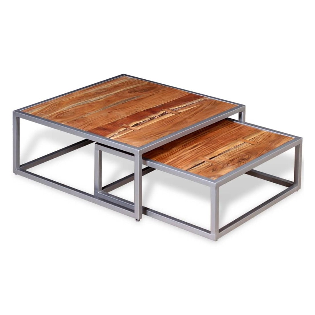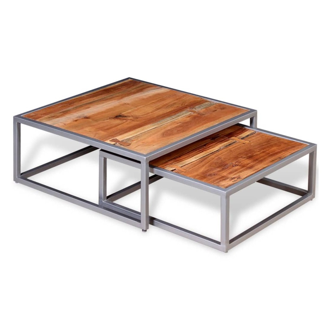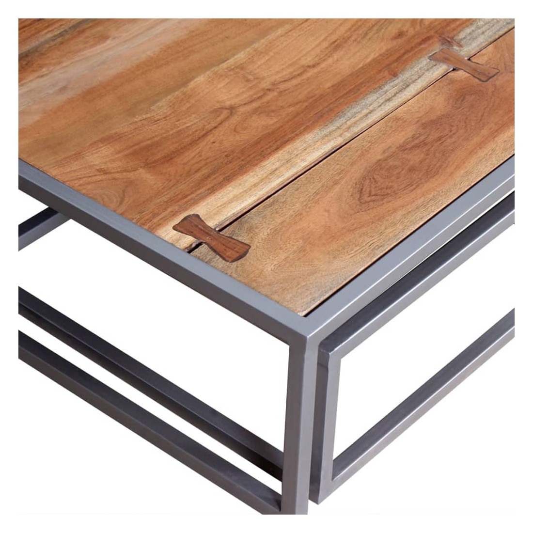 Cet ensemble de table basse unique, en bois d'acacia massif, sera un excellent accessoire à votre pièce. Elle peut également être utilisée comme table auxiliaire, table d'appoint et table de salon. Le dessus de table solide offre une surface stable et sûre sur laquelle vous pouvez placer des boissons, une corbeille de fruits, un vase ou d'autres objets décoratifs. Les pieds en acier solides s'ajoutent à la structure robuste. L'ensemble de table basse a été fait à la main à partir de bois d'acacia massif. Le travail d'artisanat raffiné et les magnifiques grains de bois rendent chaque meuble unique et légèrement différent de l'autre. La livraison comprend 2 tables basses. Veuillez noter : les couleurs varient d'une pièce à l'autre, ce qui rend chacune de nos tables basses unique. La livraison est aléatoire, ce qui garantit l'exclusivité et l'individualité de votre produit.