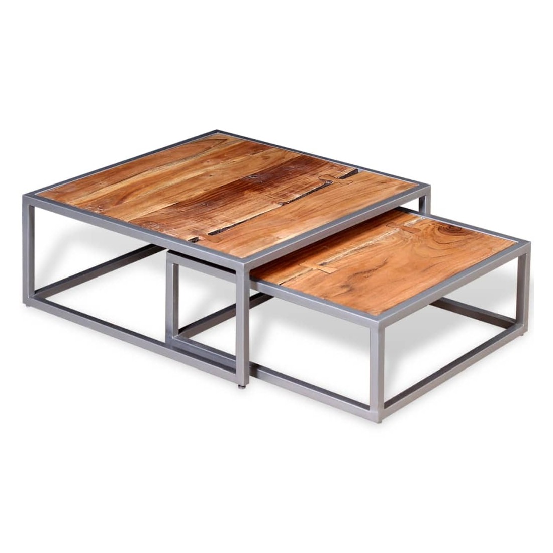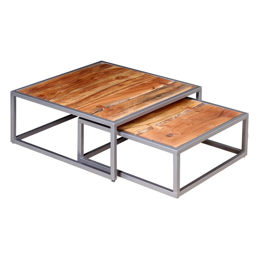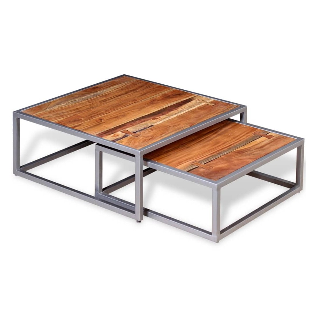 Cet ensemble de table basse unique, en bois d'acacia massif, sera un excellent accessoire à votre pièce. Elle peut également être utilisée comme table auxiliaire, table d'appoint et table de salon. Le dessus de table solide offre une surface stable et sûre sur laquelle vous pouvez placer des boissons, une corbeille de fruits, un vase ou d'autres objets décoratifs. Les pieds en acier solides s'ajoutent à la structure robuste. L'ensemble de table basse a été fait à la main à partir de bois d'acacia massif. Le travail d'artisanat raffiné et les magnifiques grains de bois rendent chaque meuble unique et légèrement différent de l'autre. La livraison comprend 2 tables basses. Veuillez noter : les couleurs varient d'une pièce à l'autre, ce qui rend chacune de nos tables basses unique. La livraison est aléatoire, ce qui garantit l'exclusivité et l'individualité de votre produit.