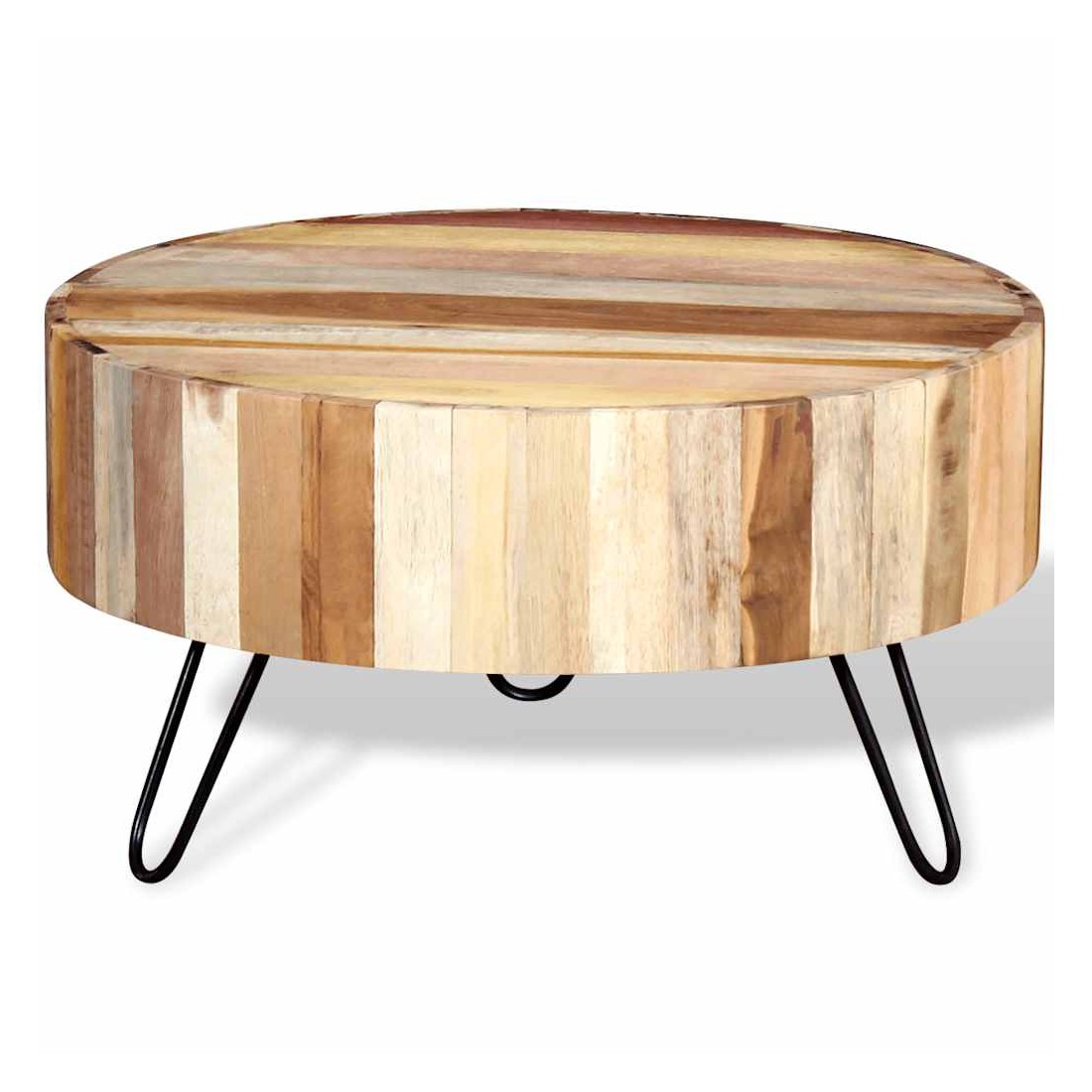 • Matériau : dessus de table en bois de récupération massif + jambes en fer laqué