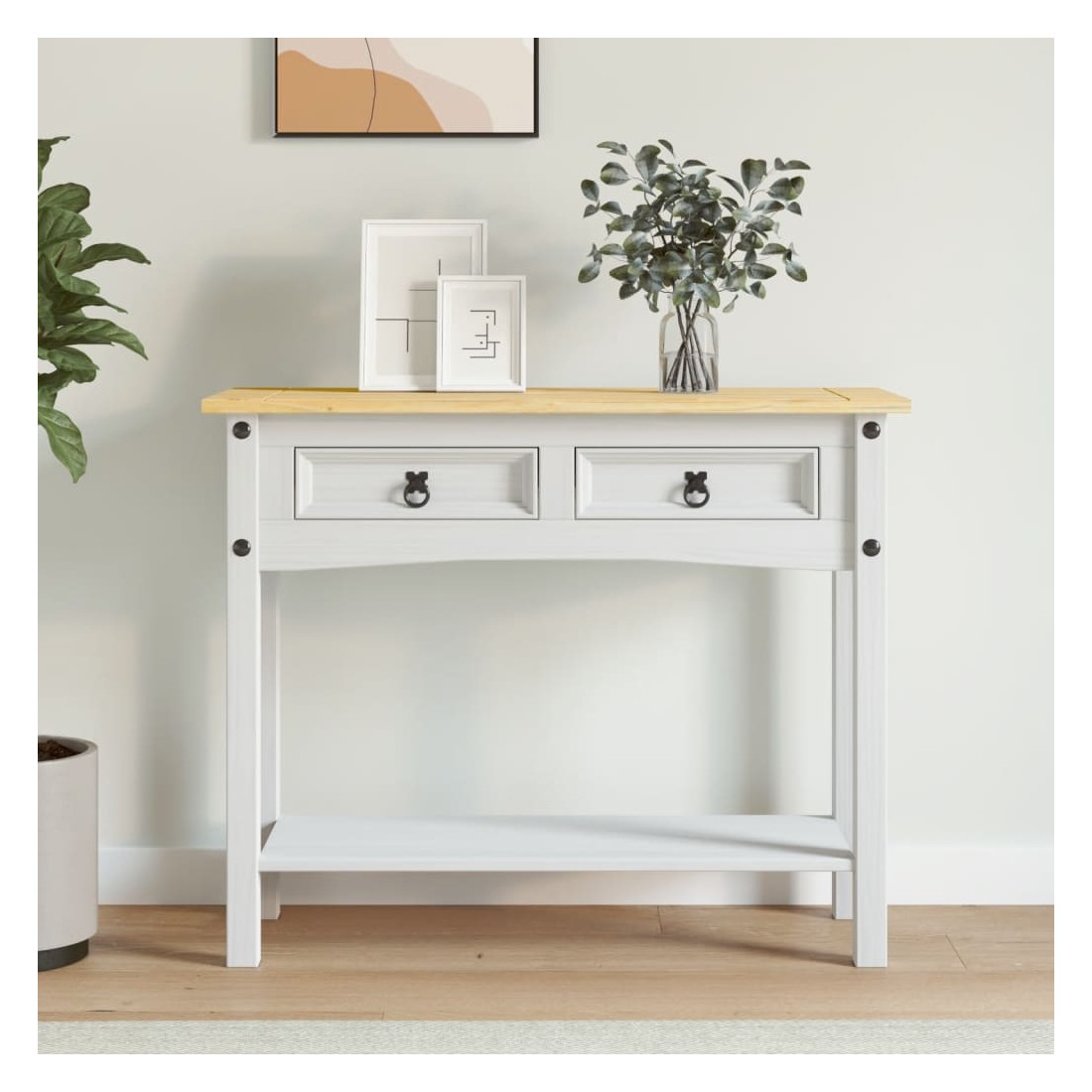 Table console Gamme Corona Pin mexicain Blanc 90x34,5x73 cm
