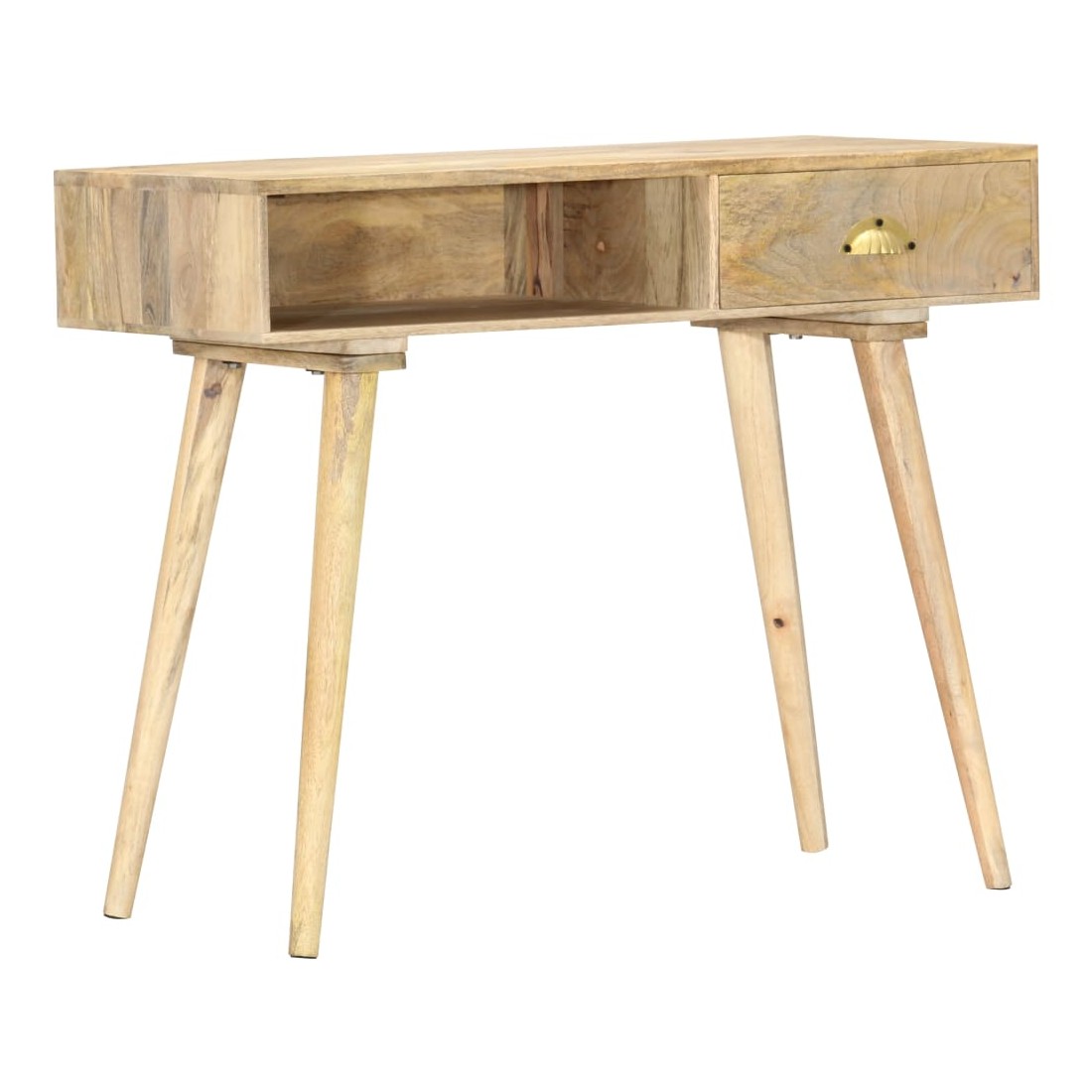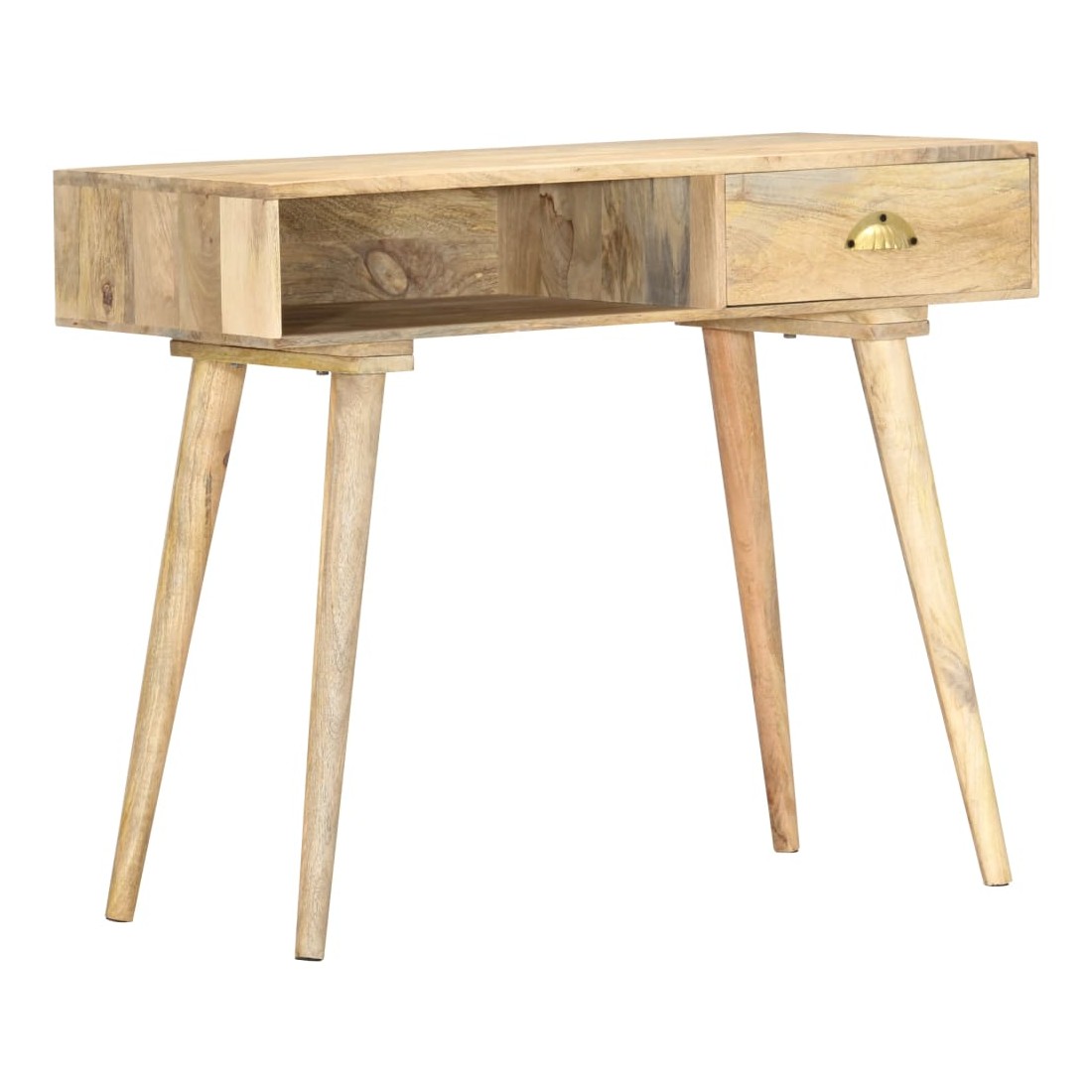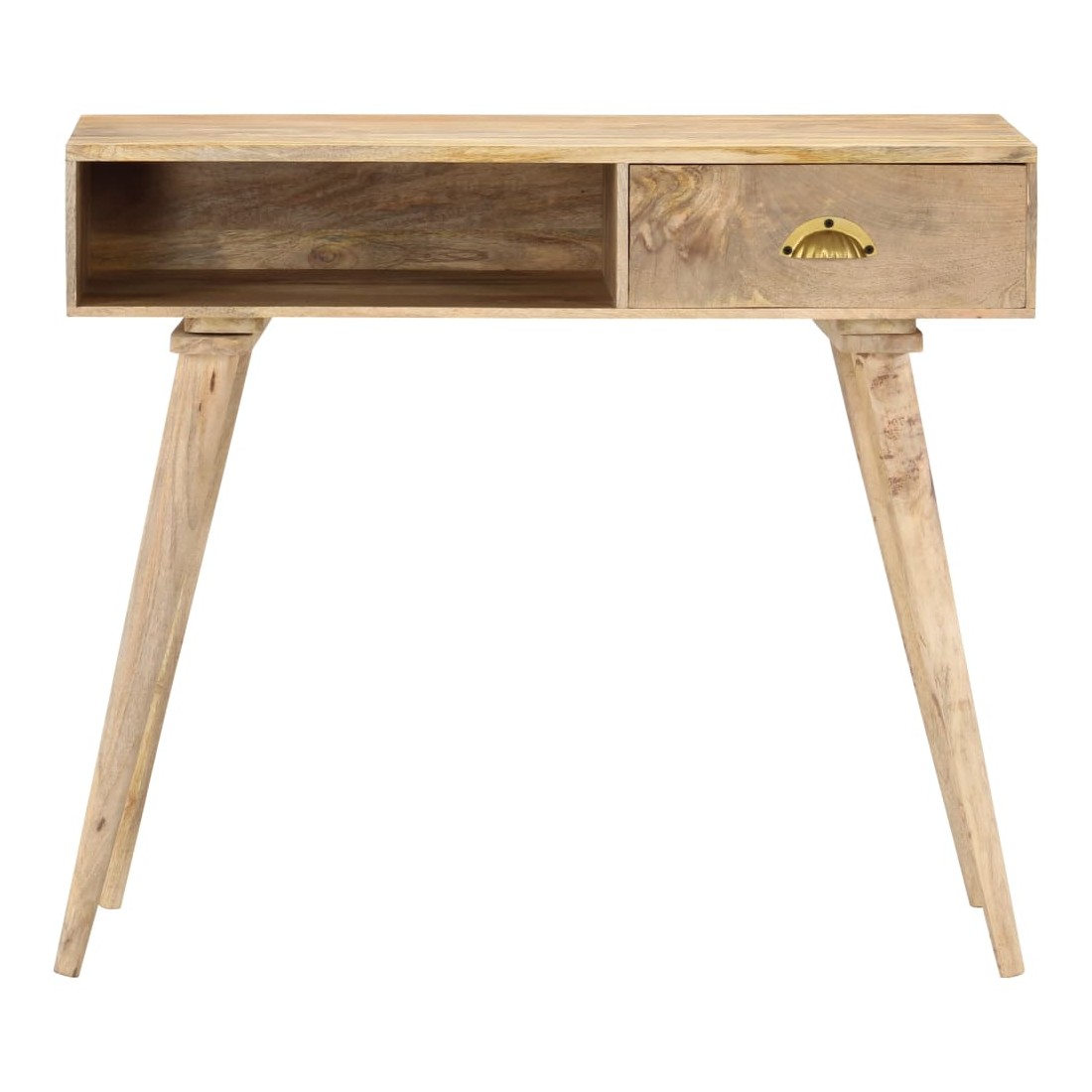 Cette table console en bois, au style rustique, sera un excellent supplément à votre salon, salle à manger, couloir, etc. Elle peut être utilisée comme table d'appoint, table d'entrée, bureau ou table sous miroir, etc. La table est en bois de manguier massif à finition naturelle, durable et beau. Chaque étape du processus est réalisée avec le plus grand soin, qu'il s'agisse de ponçage ou de laquage. Les beaux grains de bois rendent chaque meuble unique et légèrement différent l'un de l'autre. Le dessus de table robuste est idéal pour afficher des objets décoratifs, des cadres photo ou des plantes en pot. Le tiroir coulissant et un compartiment ouvert peuvent être utilisés pour ranger de petits objets comme des clés, des blocs-notes, des stylos et d'autres bibelots. Elle est facile à ne