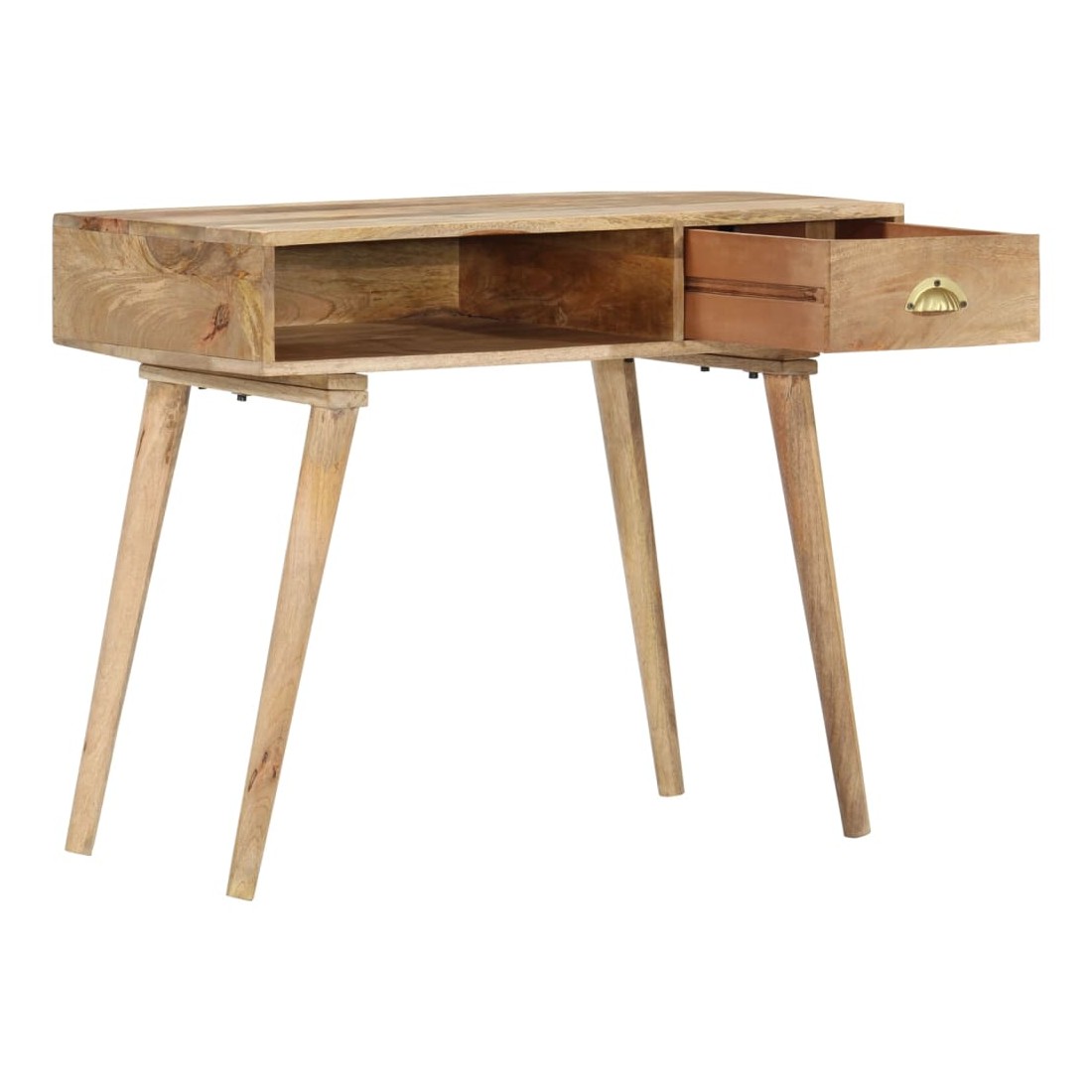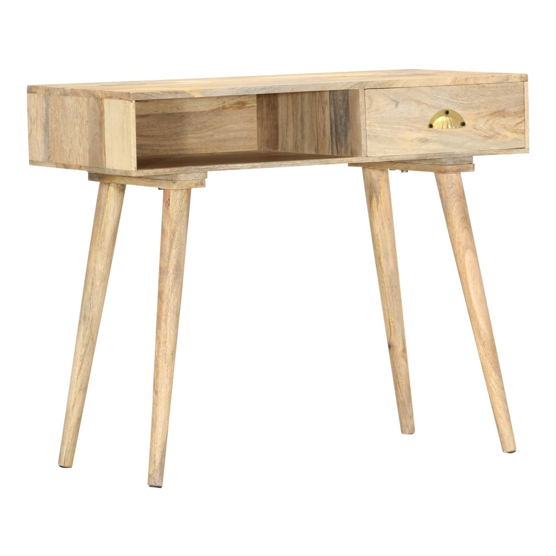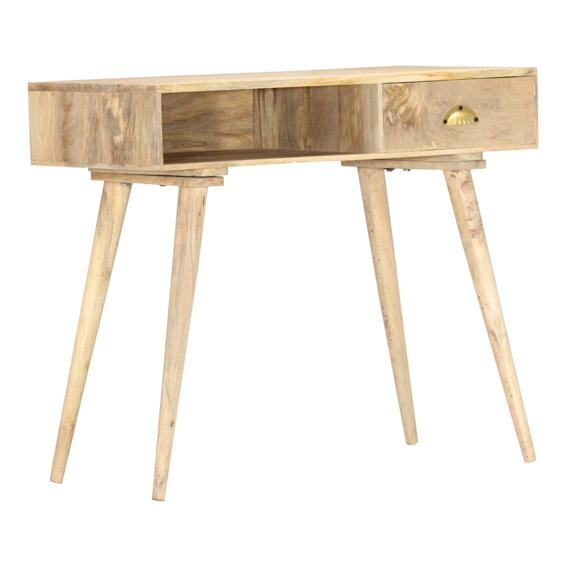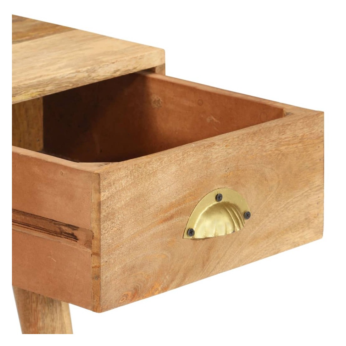 Cette table console en bois, au style rustique, sera un excellent supplément à votre salon, salle à manger, couloir, etc. Elle peut être utilisée comme table d'appoint, table d'entrée, bureau ou table sous miroir, etc. La table est en bois de manguier massif à finition naturelle, durable et beau. Chaque étape du processus est réalisée avec le plus grand soin, qu'il s'agisse de ponçage ou de laquage. Les beaux grains de bois rendent chaque meuble unique et légèrement différent l'un de l'autre. Le dessus de table robuste est idéal pour afficher des objets décoratifs, des cadres photo ou des plantes en pot. Le tiroir coulissant et un compartiment ouvert peuvent être utilisés pour ranger de petits objets comme des clés, des blocs-notes, des stylos et d'autres bibelots. Elle est facile à ne