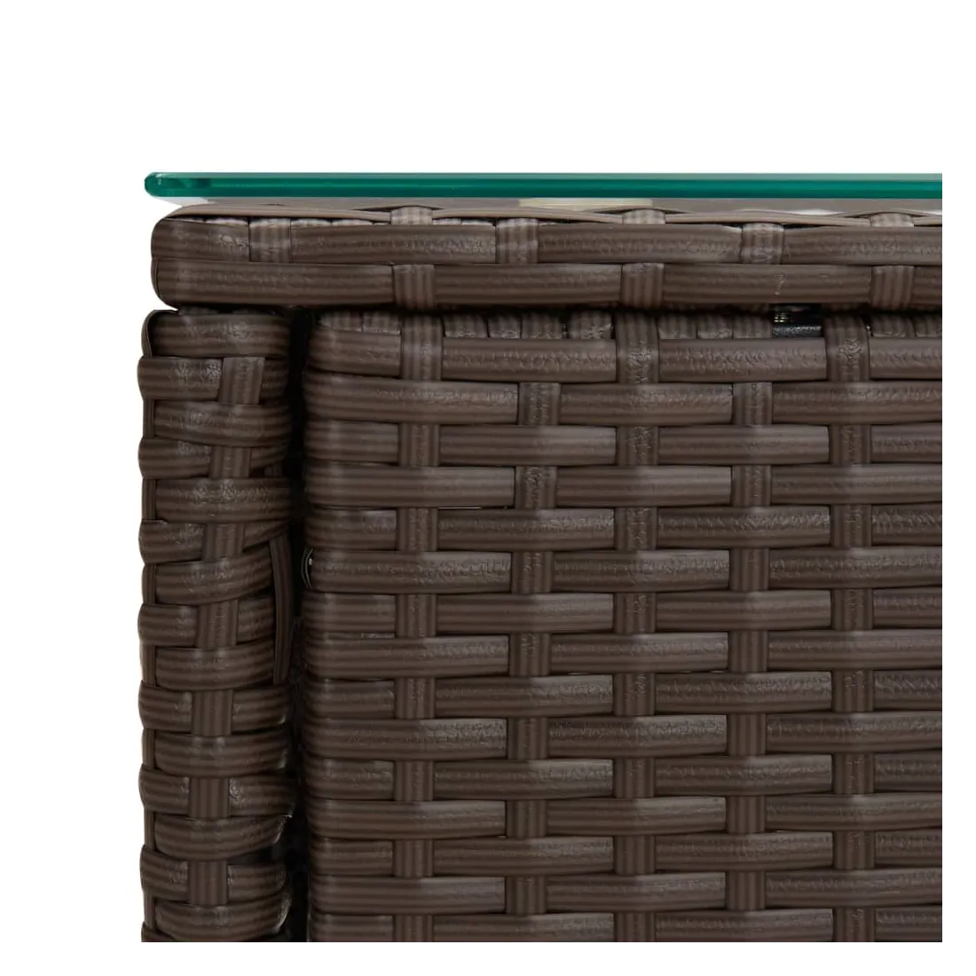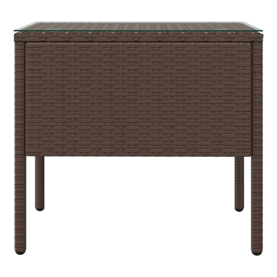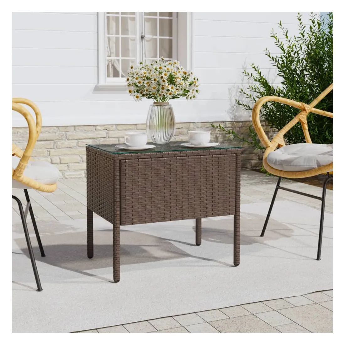 Table d'appoint marron 53x37x48 cm poly rotin et verre trempé