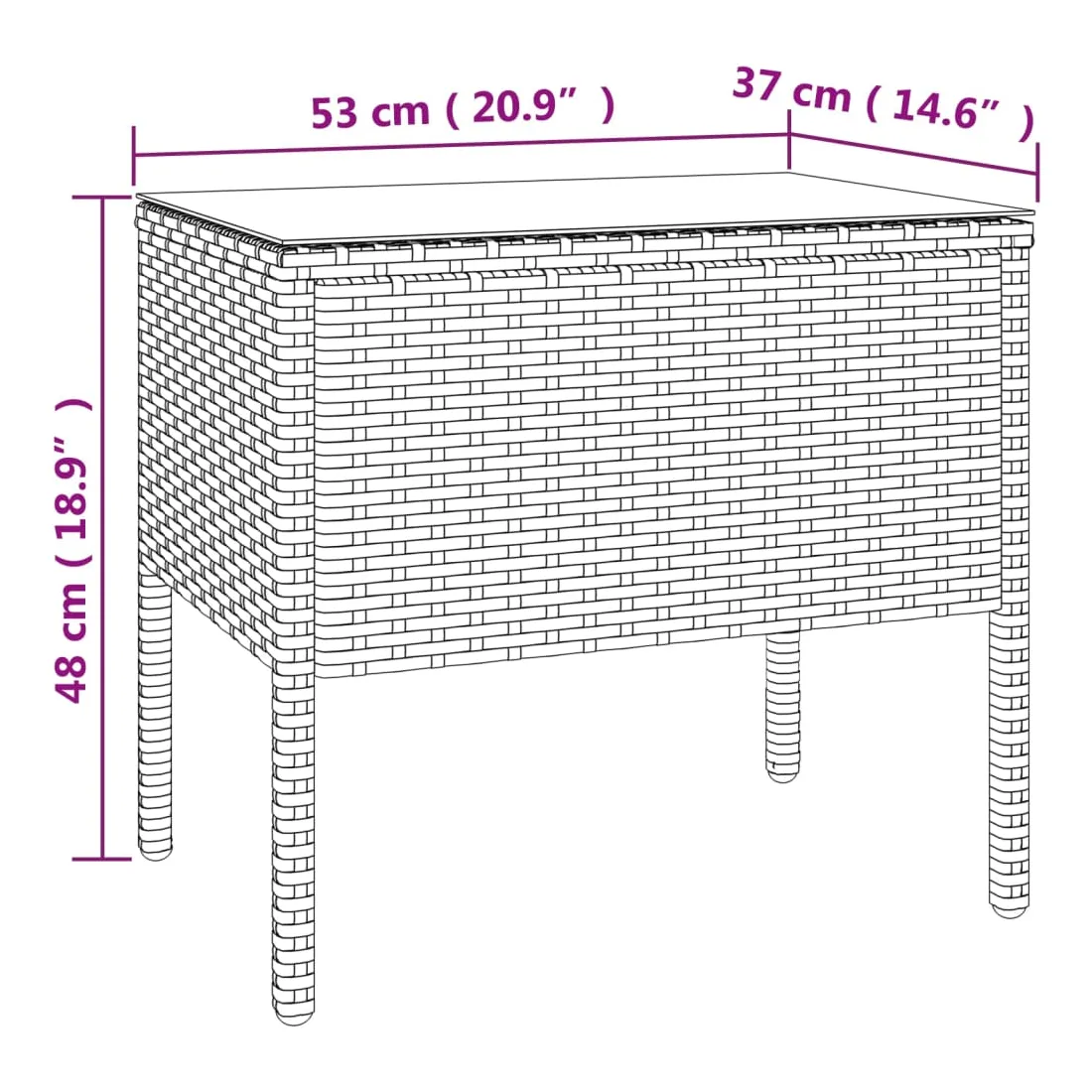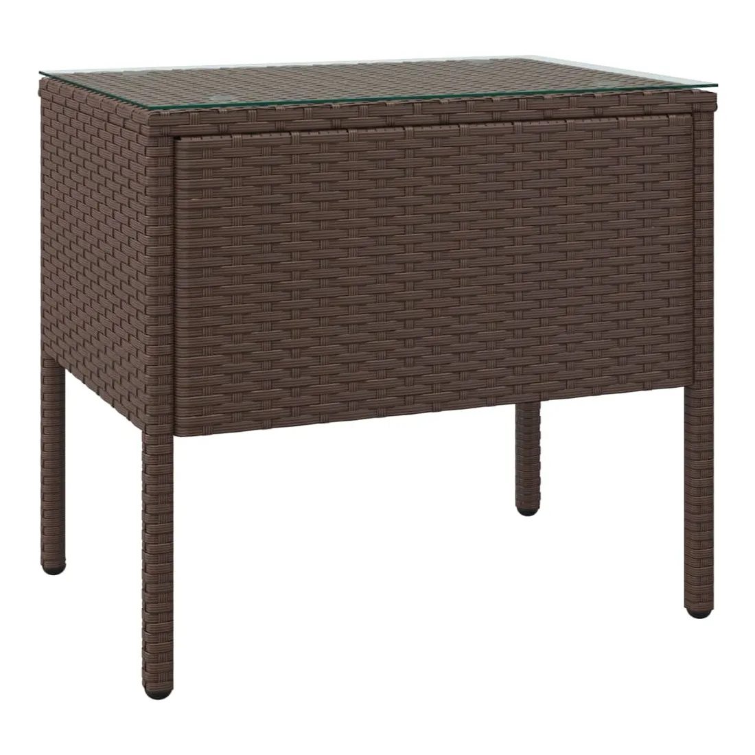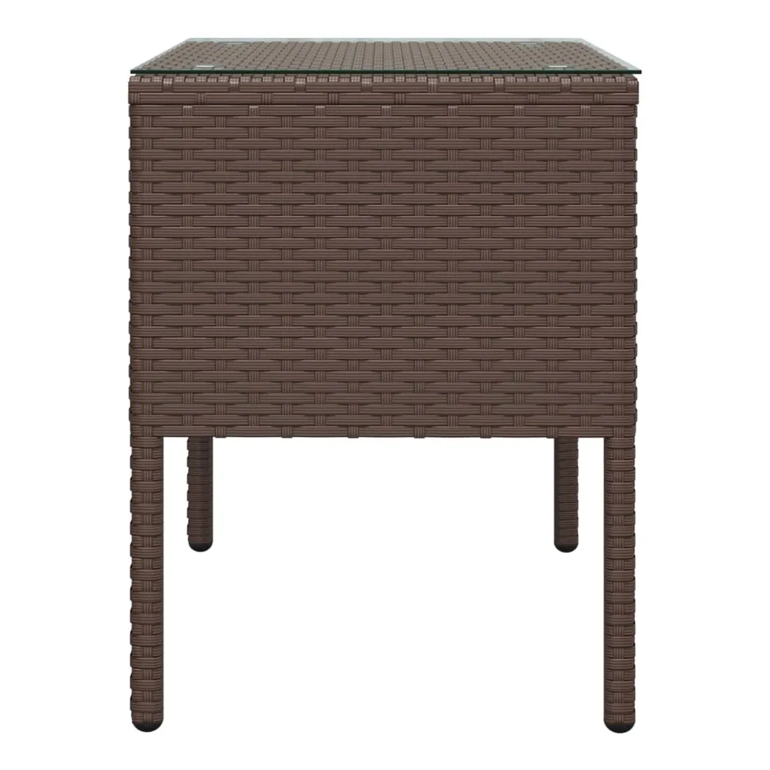 Table d'appoint marron 53x37x48 cm poly rotin et verre trempé