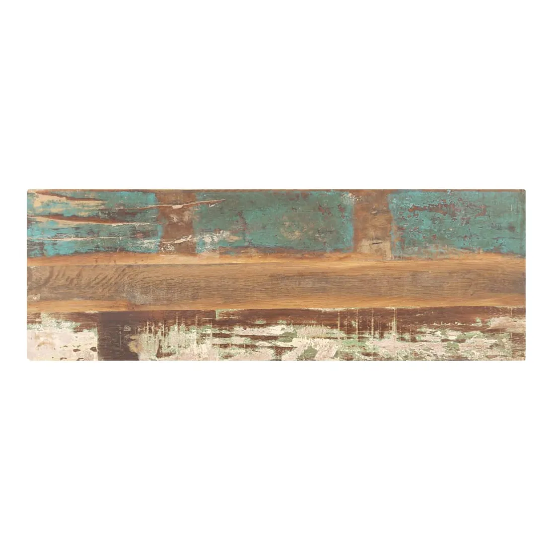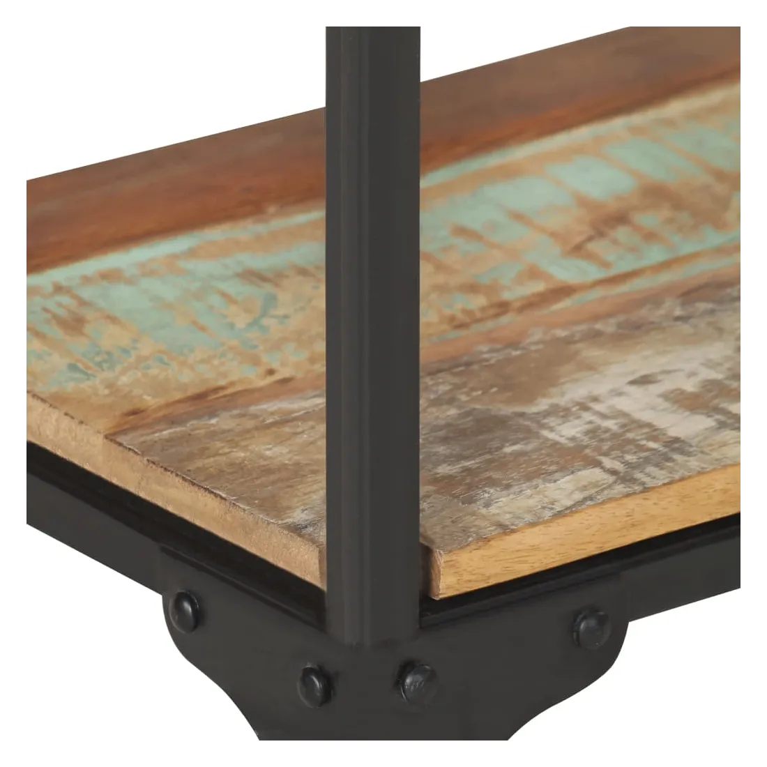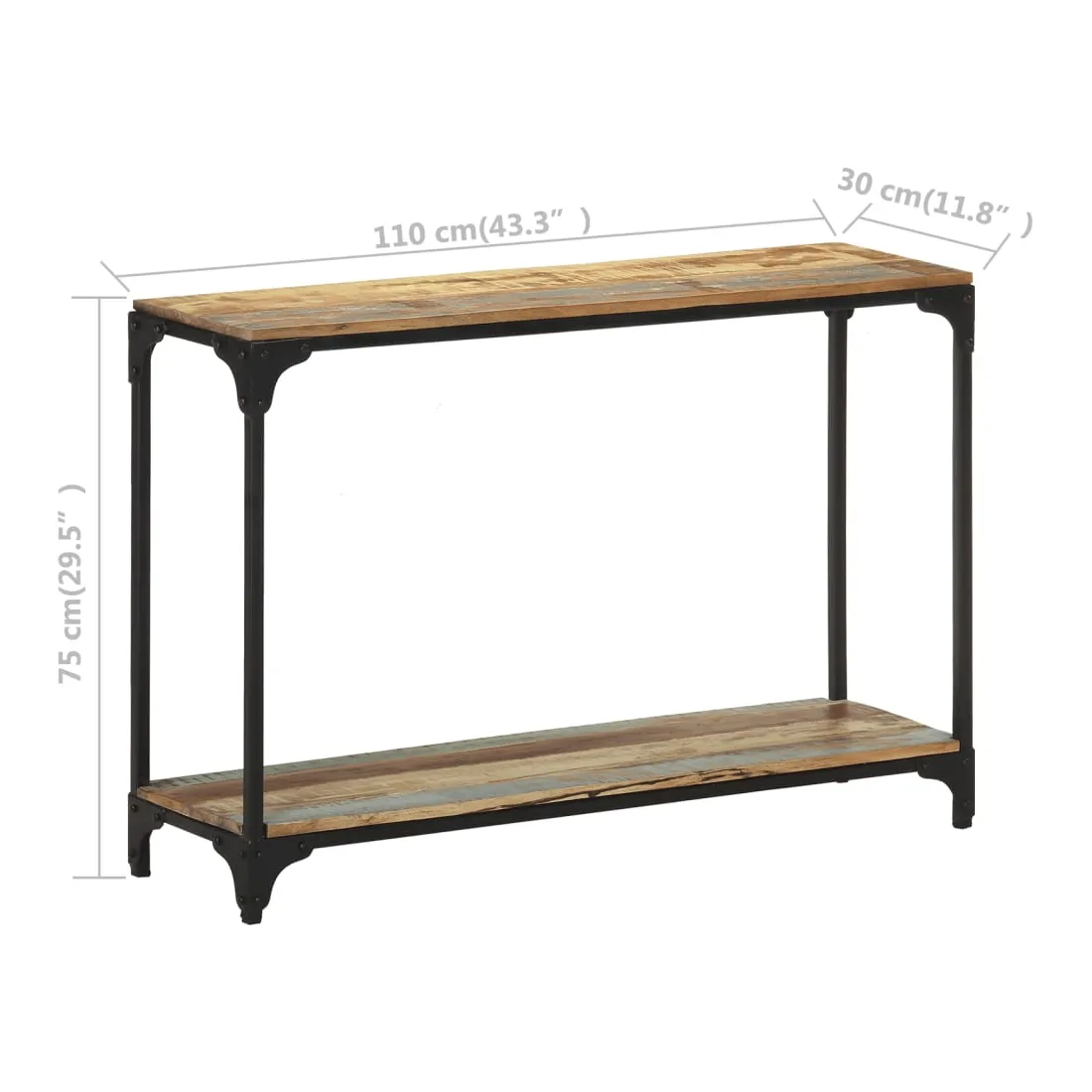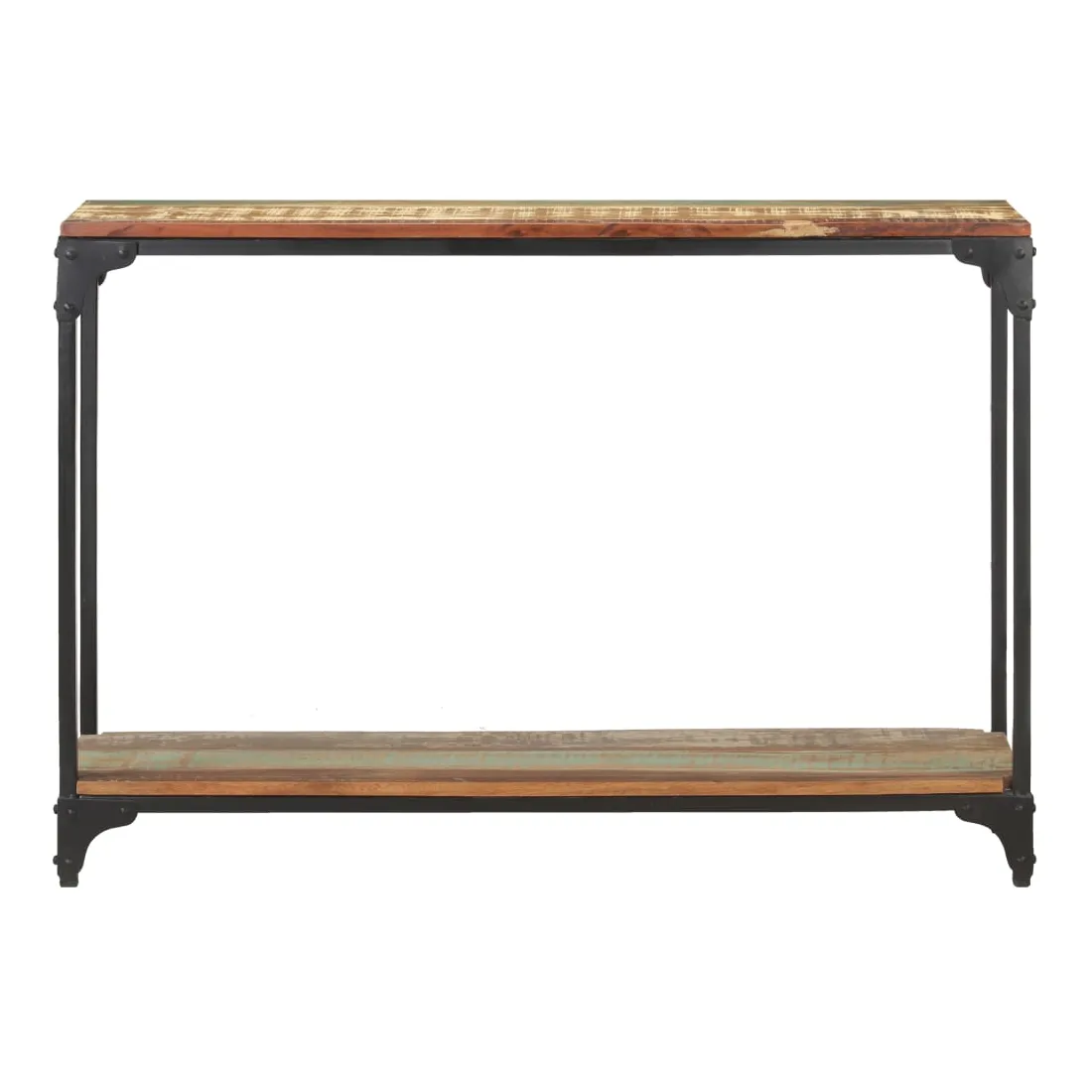 vidaXLCette table console en bois sera un complément pratique à votre salon, couloir, etc. Vous pouvez également la placer sous un miroir. Cette table de couloir est fabriquée en bois de récupération provenant de solives, de planchers et de poutres de soutènement de vieux bâtiments démolis et peut comprendre de différents types de bois comme le pin, le teck, le hêtre, le chêne, le cèdre, le bois de manguier, l'acacia, etc. Cela signifie que le bois de récupération conserve les caractéristiques de ces différents types de bois. Le bois de récupération est déjà vieilli, corrodé et séché, donc il ne rétrécit ni se plie. Cette table en bois est entièrement faite à la main et les beaux grains de bois rendent chaque meuble unique et légèrement différent l'un de l'autre. Avec son cadre en acier enduit de poudre noire, la table est stable et robuste. Le dessus robuste vous offre suffisamment d’espace pour mettre vos paniers de fruits, cadres photo ou autres objets décoratifs. L’étagère inférieure est idéale pour placer des magazines, des livres et d’autres petits essentiels bien organisés et à portée de main. Remarque importante : les couleurs varient d'une pièce à l'autre, rendant chaque pièce unique. La livraison est aléatoire.