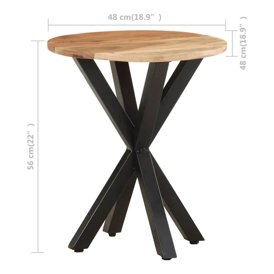 - Matériau : bois d'acacia massif avec une finition naturelle, fer enduit de poudre