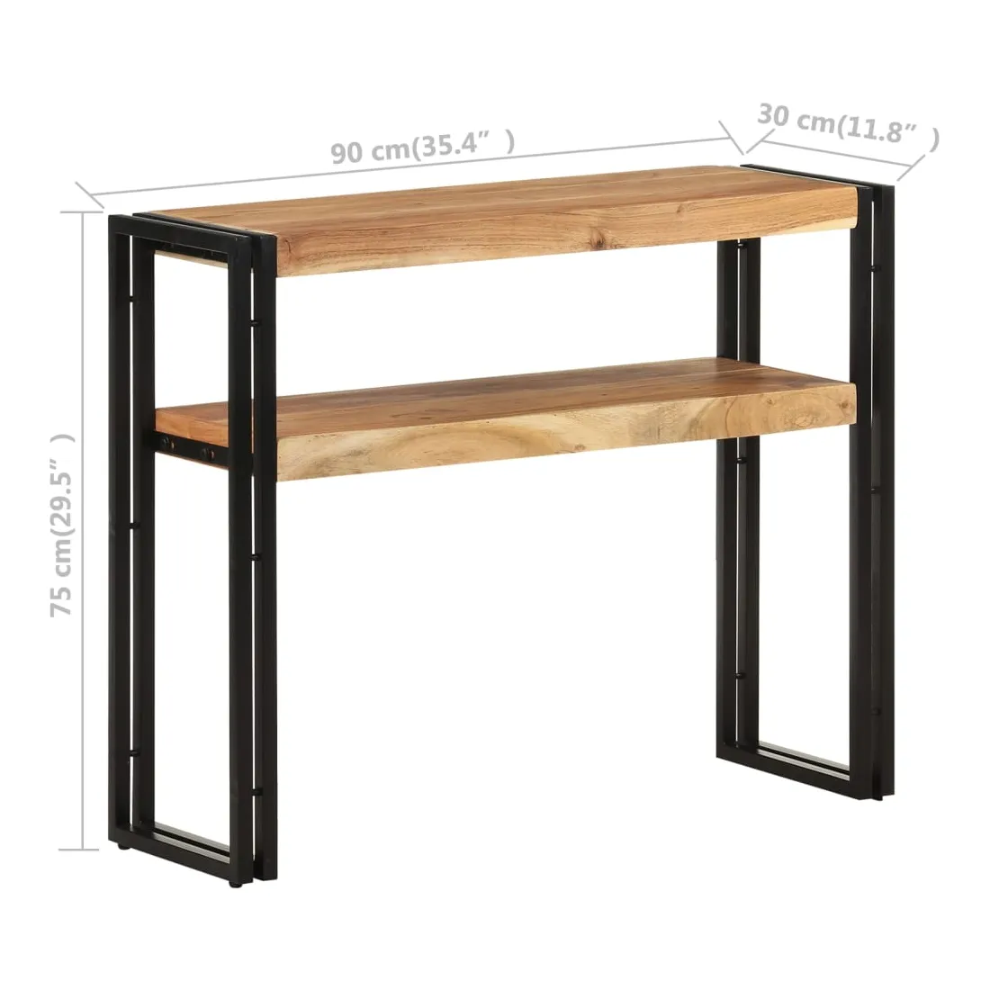 La table console en bois se veut un accroche-regard intemporel dans votre pièce. Elle est idéale pour placer des livres, des magazines et d'autres articles avec de longues étagères à deux couches. Ce buffet est en bois d'acacia solide, un bois dur aux grains denses. Il est combiné avec du fer, ce qui le rend très stable et durable, et résiste à l'usure du temps. Le savoir-faire exquis garantit que chaque étape du processus est effectuée avec le plus grand soin. Remarque importante : la couleur et les grains de bois peuvent varier d'une pièce à l'autre, ce qui rend chaque pièce unique et légèrement différente l'une de l'autre ; la livraison est aléatoire.