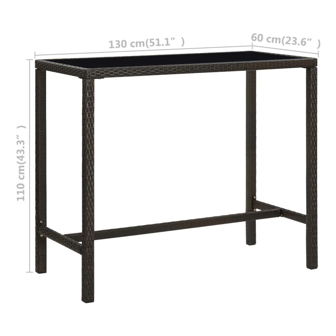 Table de bar de jardin Marron 130x60x110cm Résine tressée verre