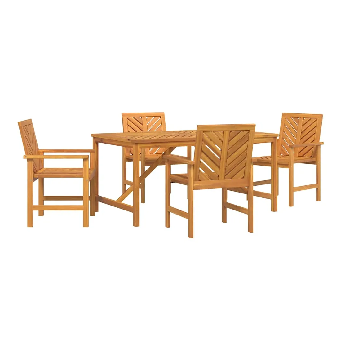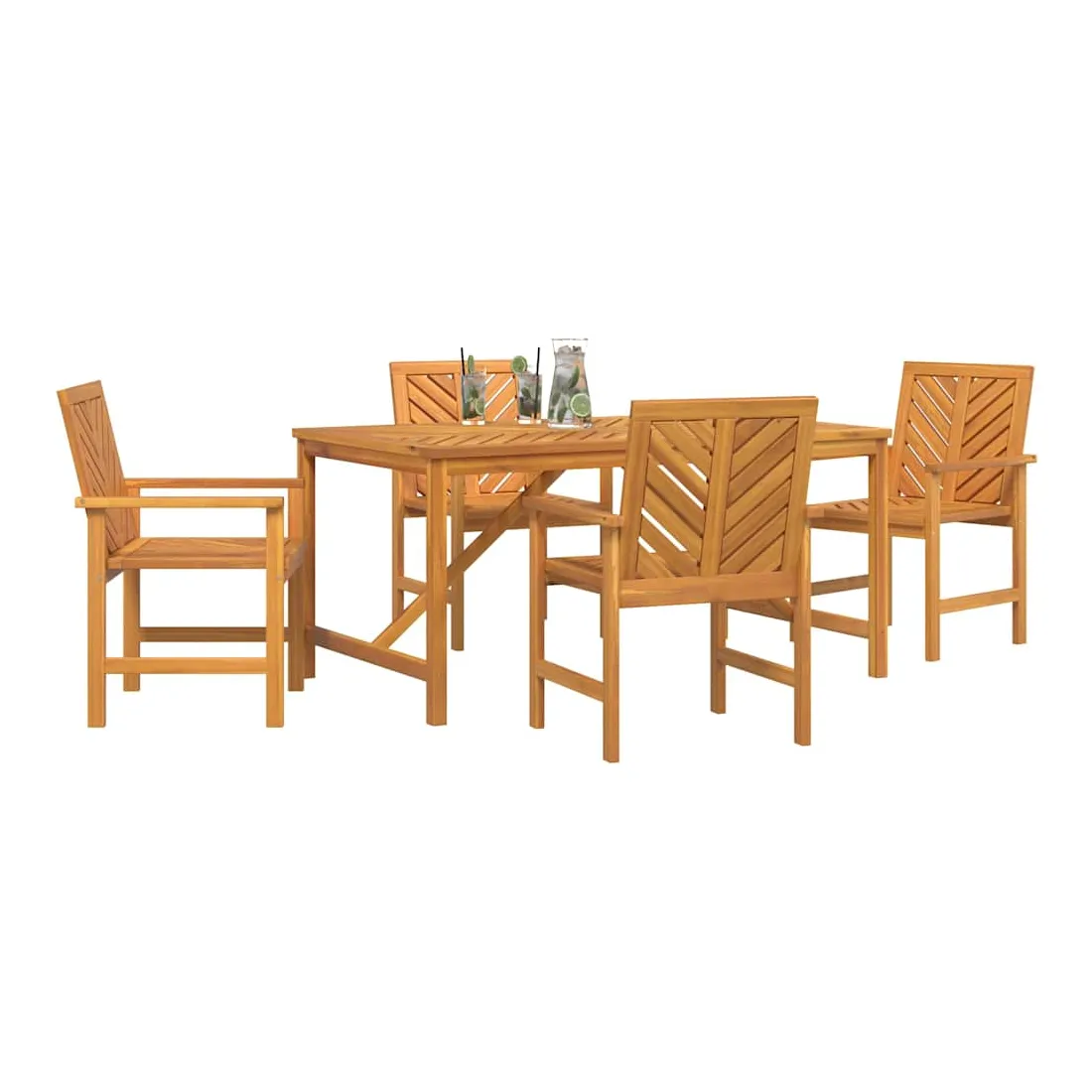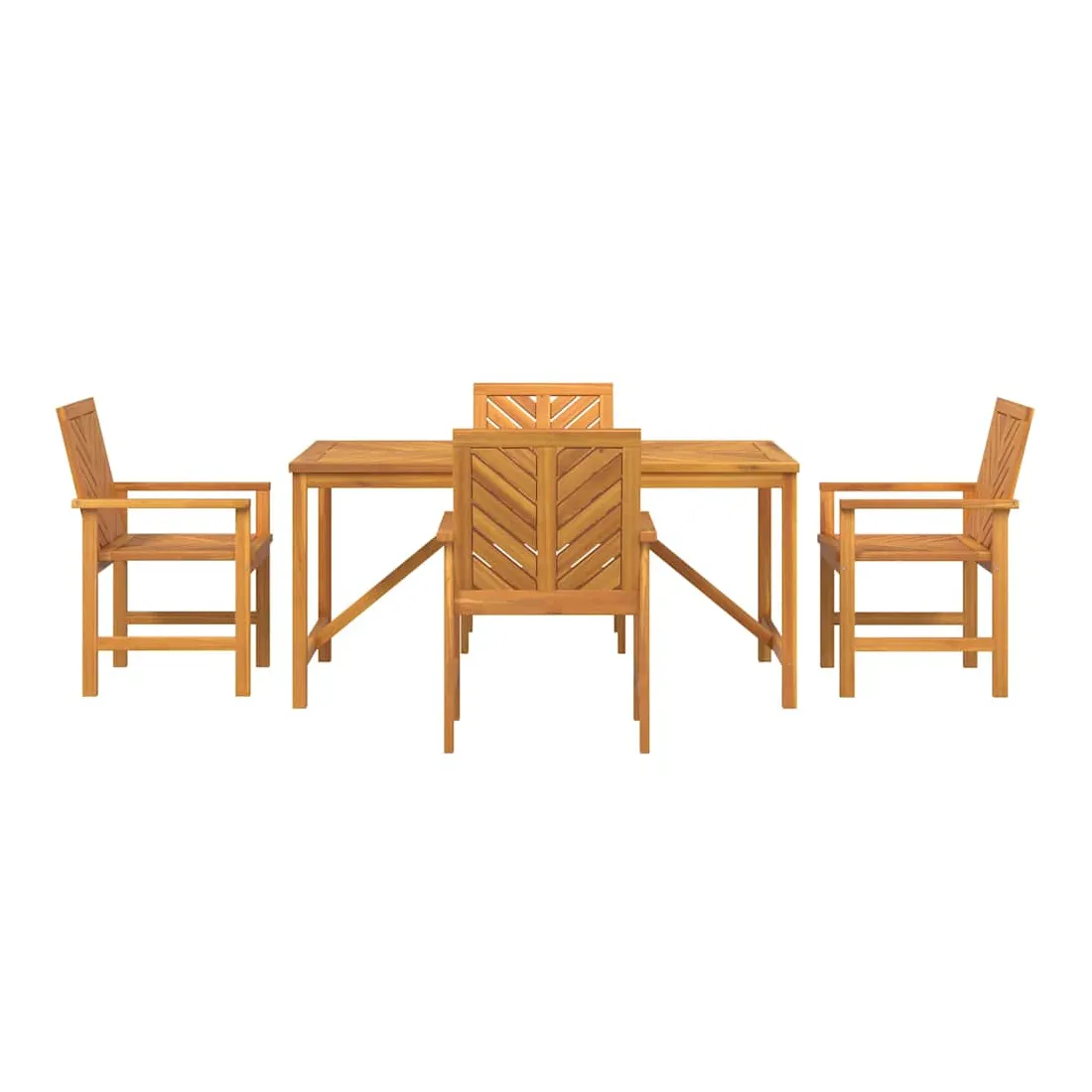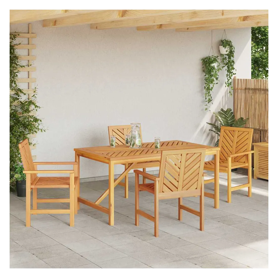 Ce set de repas de jardin moderne est un super choix pour manger dehors. Avec ses lignes simples et son style épuré, il crée une ambiance chic et classe dans votre jardin ou sur votre terrasse. Parfait pour rassembler la famille et les amis, il embellit tous les espaces extérieurs. Matériaux : Fabriqué en bois d'acacia massif, ce set a un look chaleureux et élégant grâce à son beau grain naturel. Ce bois est choisi pour sa solidité et son allure, s'intégrant parfaitement dans n'importe quel jardin. Composants inclus : Ce set est composé d'une table robuste et de chaises assorties, parfaites pour manger dehors. Chaque chaise a des pieds en acacia massif, avec accoudoirs et sièges, tous unis par une même couleur et matériau pour un look harmonieux. Caractéristiques : La forme rectangulaire classique s'adapte à toutes sortes d'aménagements extérieurs, offrant un grand espace pour partager des repas. La finition huilée protège contre l'humidité pour une longue durée de vie et peu d'entretien. Utilisations recommandées : Destiné uniquement à l'extérieur, ce set est idéal pour les jardins, terrasses et patios. Organisez-y des repas ou des brunchs décontractés grâce à sa capacité généreuse. Entretien et maintenance : Pour le garder en bon état, essuyez régulièrement avec un chiffon sec. Évitez de l'exposer aux intempéries quand vous ne l’utilisez pas. Une housse de protection par mauvais temps peut prolonger sa durée de vie.