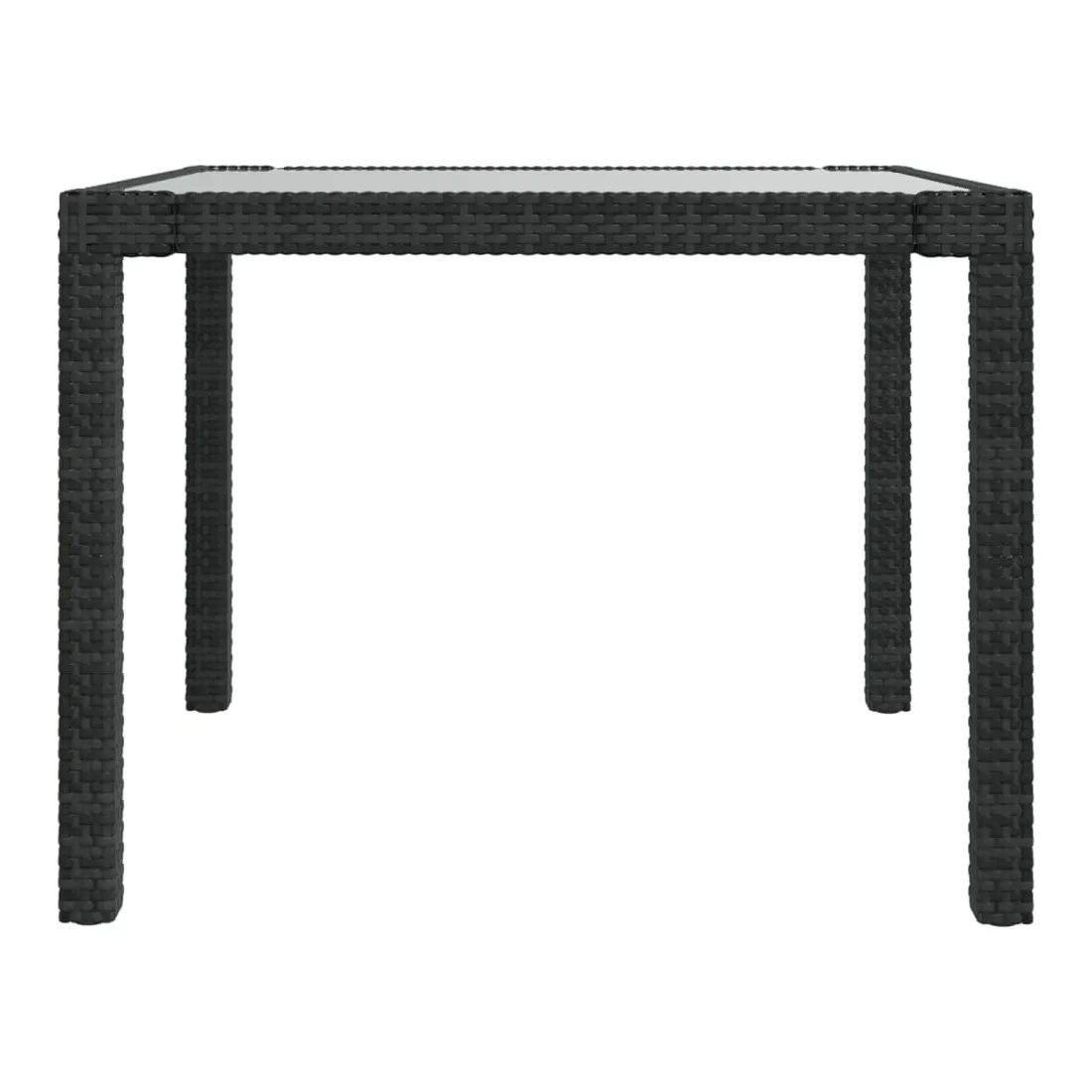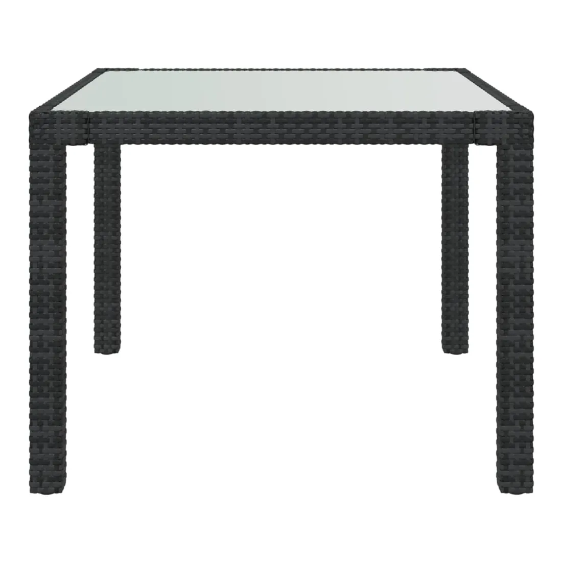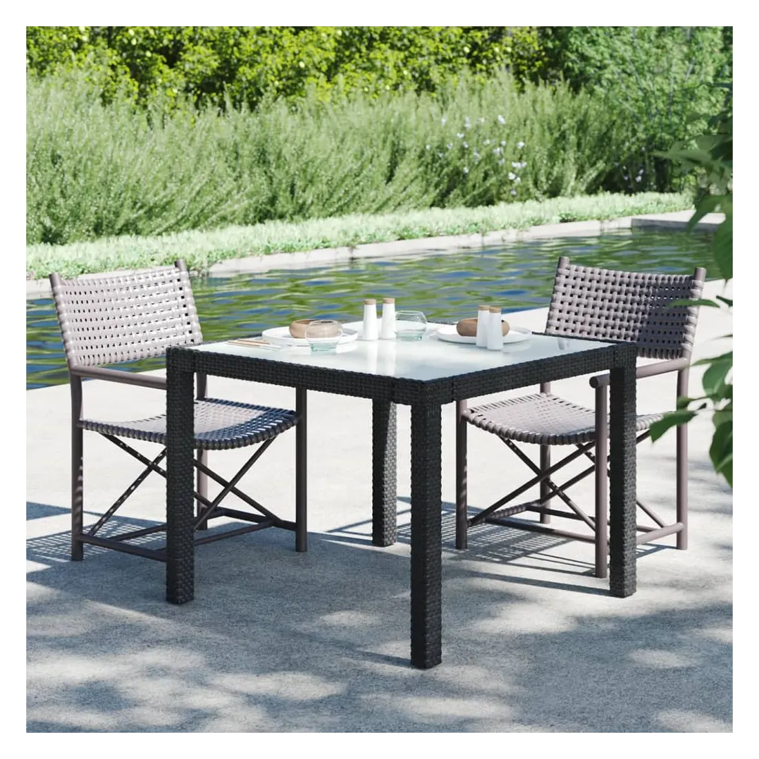 Table de jardin 90x90x75 cm Verre trempé et résine tressée Noir