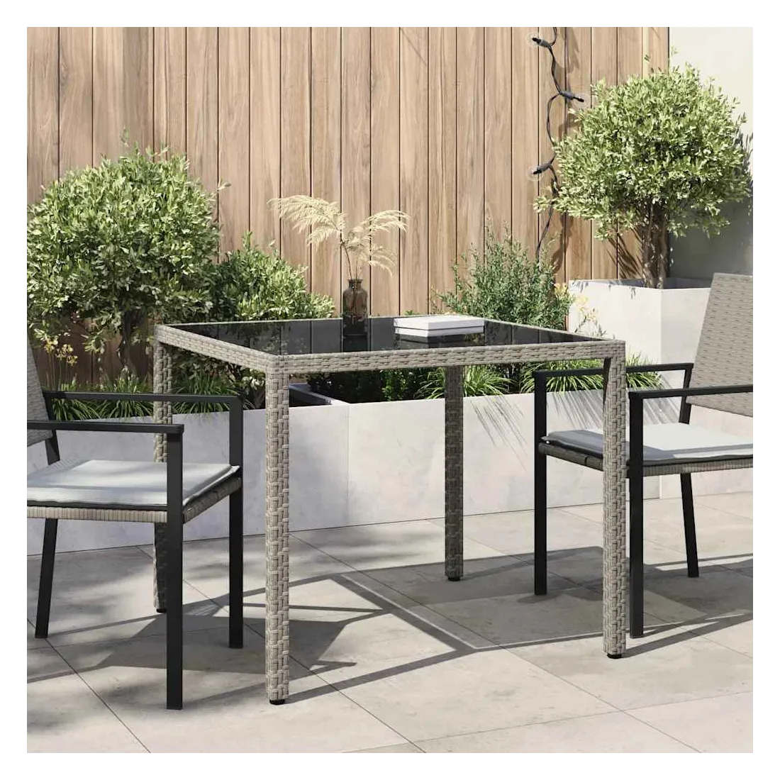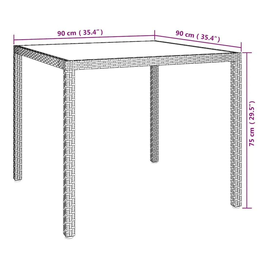 Combinant à la fois style et fonction, cette table de jardin en résine tressée sera certainement la pièce maîtresse de votre jardin, patio ou tout autre espace de vie. Dotée d'un cadre en acier enduit de poudre et enveloppé de résine tressée, cette table d'extérieur est solide et stable. De plus, le dessus de table est en verre trempé, ce qui le rend facile à nettoyer. Grâce à sa construction légère, la table de jardin est facile à déplacer. Remarque : afin de prolonger la durée de vie des meubles d'extérieur, nous vous recommandons de les protéger avec une housse imperméable.