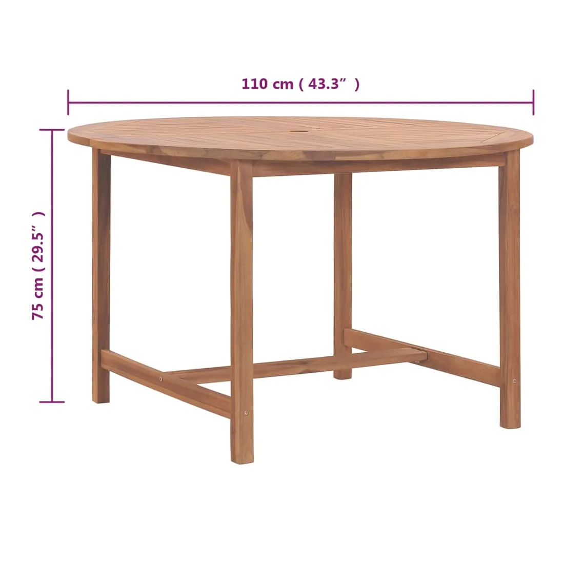 Table de salle à manger de jardin Ø110x75cm Bois massif de teck