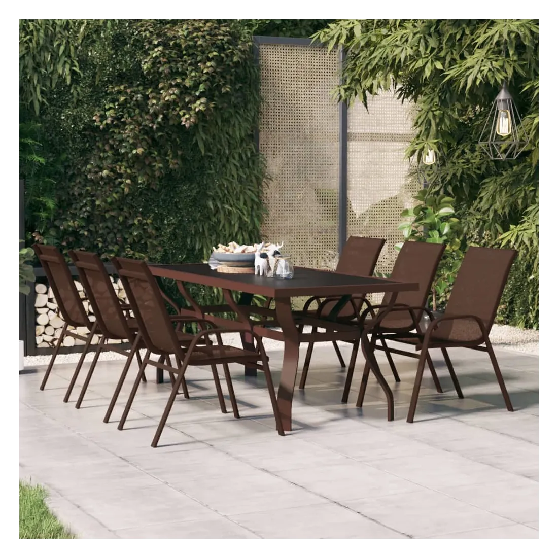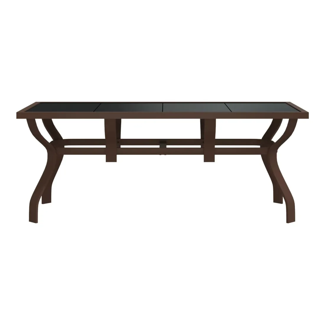 Cette table de jardin classique, alliant style et fonctionnalité, est une excellente pièce maîtresse de votre espace extérieur. Matériau haut de gamme : cette table à manger avec un dessus en verre trempé est dotée de pieds en acier enduit de poudre, ce qui donne à la table une stabilité optimale.Cadre robuste : le cadre en acier rend cette table d'extérieur robuste et durable, offrant un service durable.Pieds de table élégants : les pieds de la table de patio sont élégamment fabriqués, avec des détails dynamiques courbés et assurant sa solidité et sa beauté. C'est pourquoi il s'agit d'une pièce remarquable pour votre extérieur. Remarque :Afin de prolonger la durée de vie de votre mobilier d'extérieur, nous vous recommandons de le protéger avec une housse imperméable.
