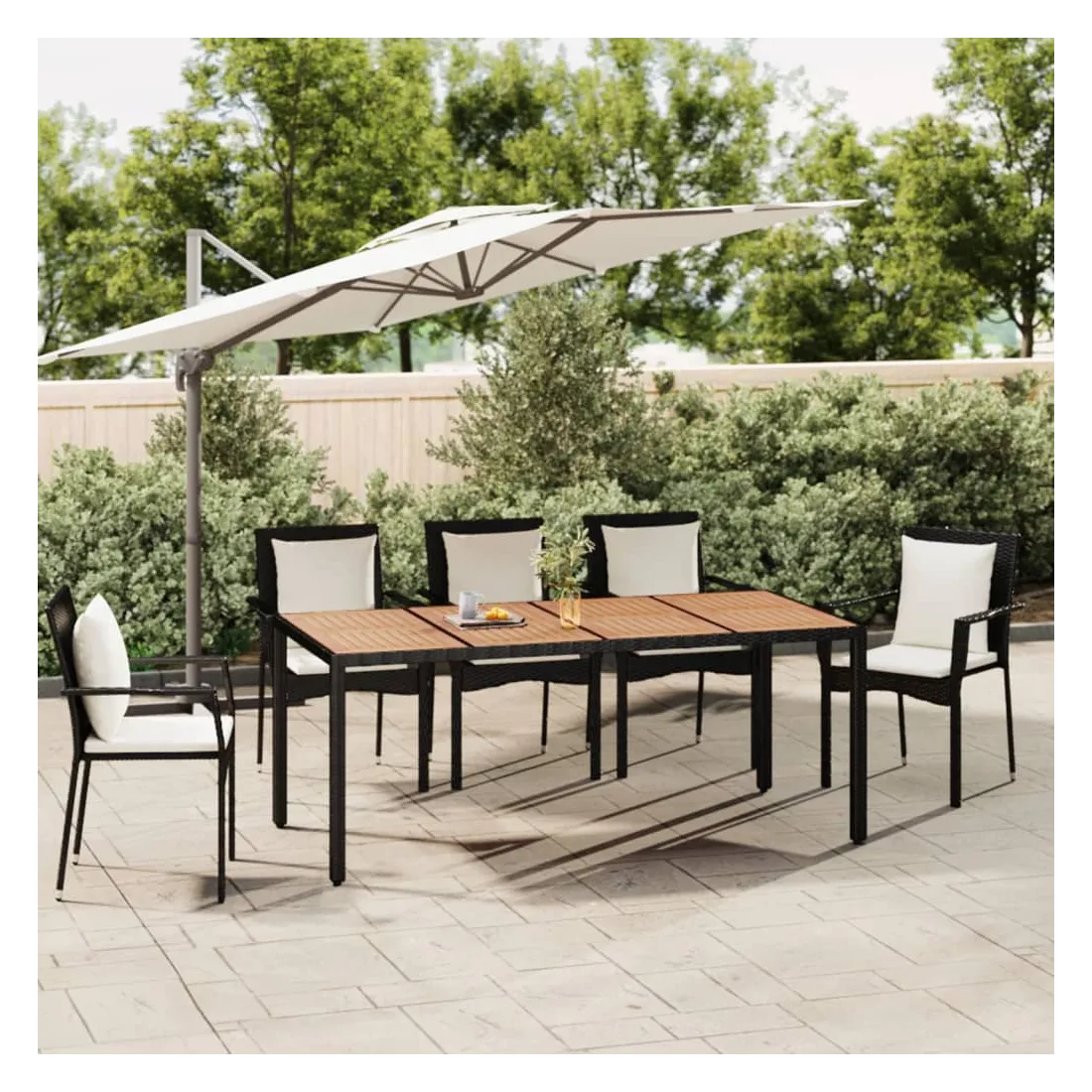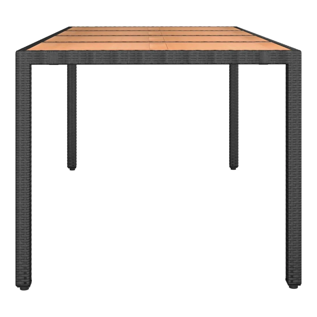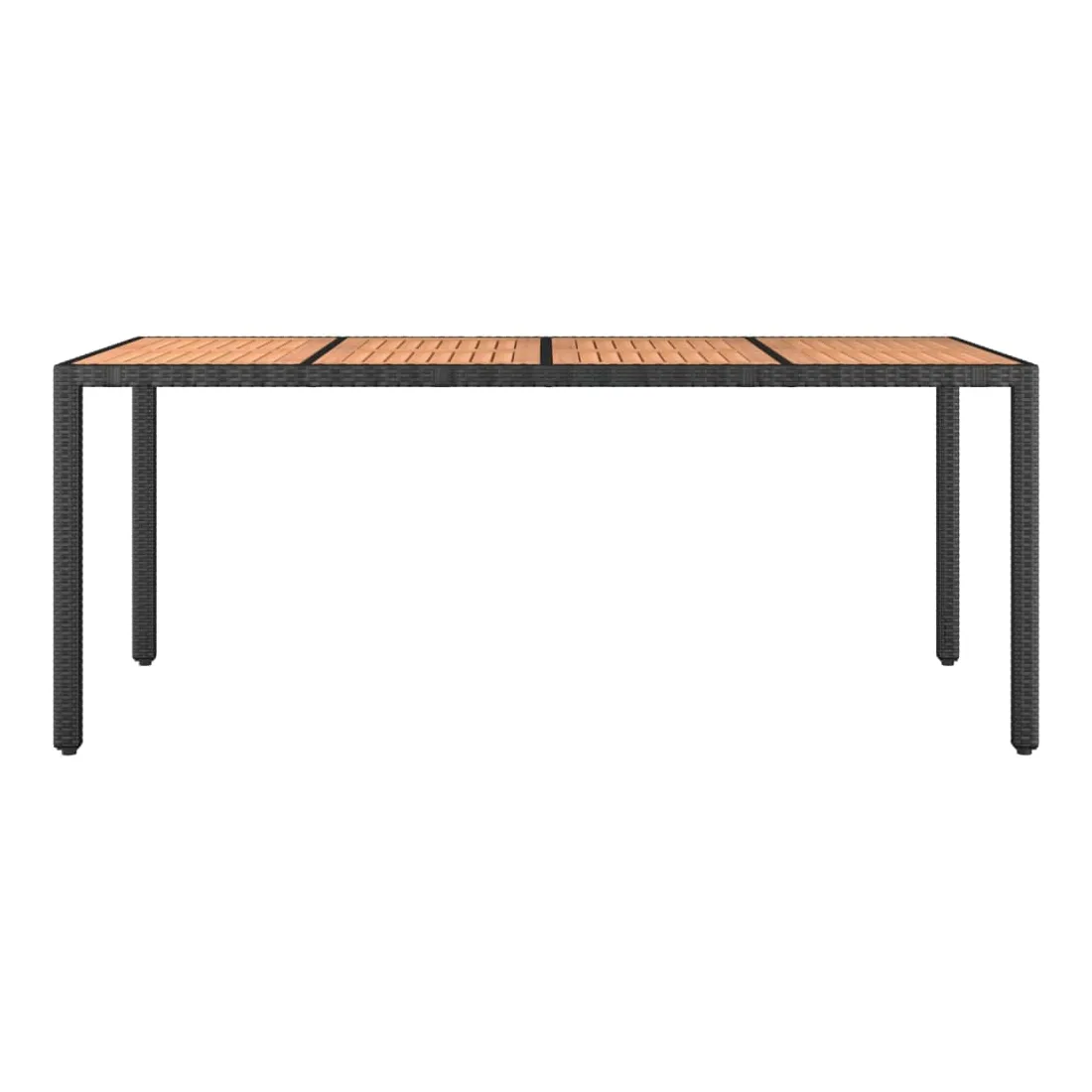 Cette table de jardin avec dessus en bois, conçue avec des lignes épurées et simples, est un excellent choix pour votre jardin, terrasse et tout autre espace extérieur. Matériau résistant aux intempéries : la résine tressée, également connue sous le nom de rotin poly, résiste aux intempéries et est facile à nettoyer. Elle reste belle à l'extérieur pendant une longue période. Elle est plus économique que d'autres matériaux, tout en offrant une excellente qualité, une commodité et un aspect esthétique.Cadre stable : l'acier est un matériau exceptionnellement dur et résistant. Il offre robustesse et stabilité.Dessus de table en bois : le dessus de table en bois d'acacia massif est parfait pour placer des boissons, de la nourriture et des décorations. Il est beau en apparence et facile à nettoyer.Design résistant à l'eau : fabriqué en matériau résistant à l'eau, ce produit peut résister à l'humidité et au temps pluvieux. Il peut également être facilement nettoyé avec un chiffon humide en cas de besoin. Bon à savoir :Pour que vos meubles d'extérieur restent beaux, nous vous recommandons de les protéger avec une housse imperméable.