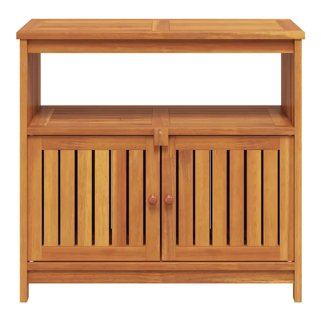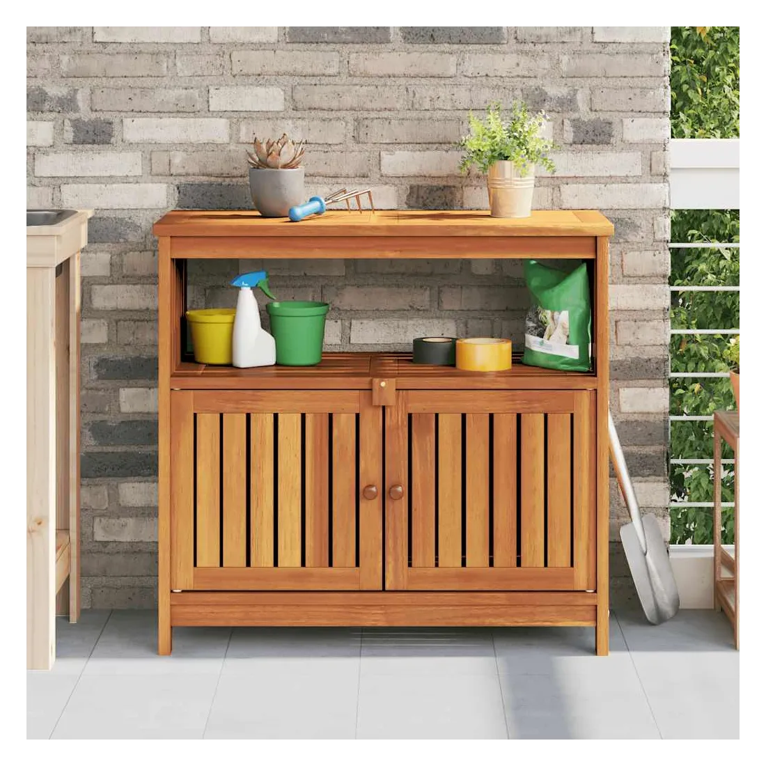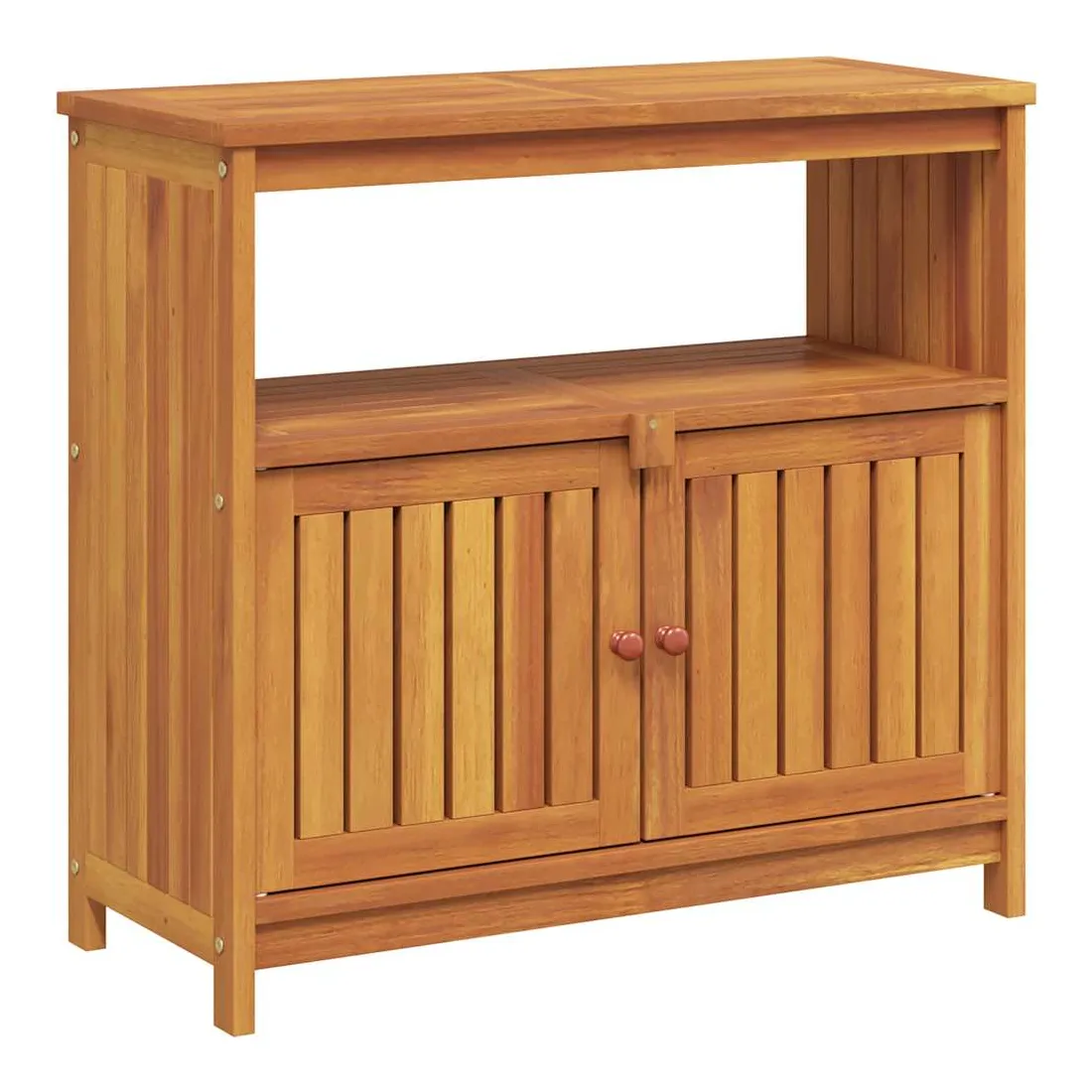 Cette table console de jardin en bois est conçue pour ajouter un style rustique unique à votre espace intérieur et extérieur. Matériau durable : le bois d'acacia massif est un matériau naturel magnifique. Le bois d'acacia un bois dur tropical, qui est dense, robuste et durable.Cadre stable : le cadre en bois de la table console assure robustesse et stabilité.Grand espace de rangement : la table d'extérieur est dotée d'une étagère et d'un compartiment avec des portes, offrant un grand espace de rangement pour garder vos différents articles essentiels quotidiens bien organisés et facilement accessibles.Portes pratiques : protégez vos objets essentiels de la poussière en les cachant derrière les portes de la table de jardin. Attention :Pour éviter qu'il ne soit renversé, ce produit doit être utilisé avec le dispositif de fixation au mur fourni. Bon à savoir :Pour que vos meubles d'extérieur restent beaux, nous vous recommandons de les protéger avec une housse imperméable.