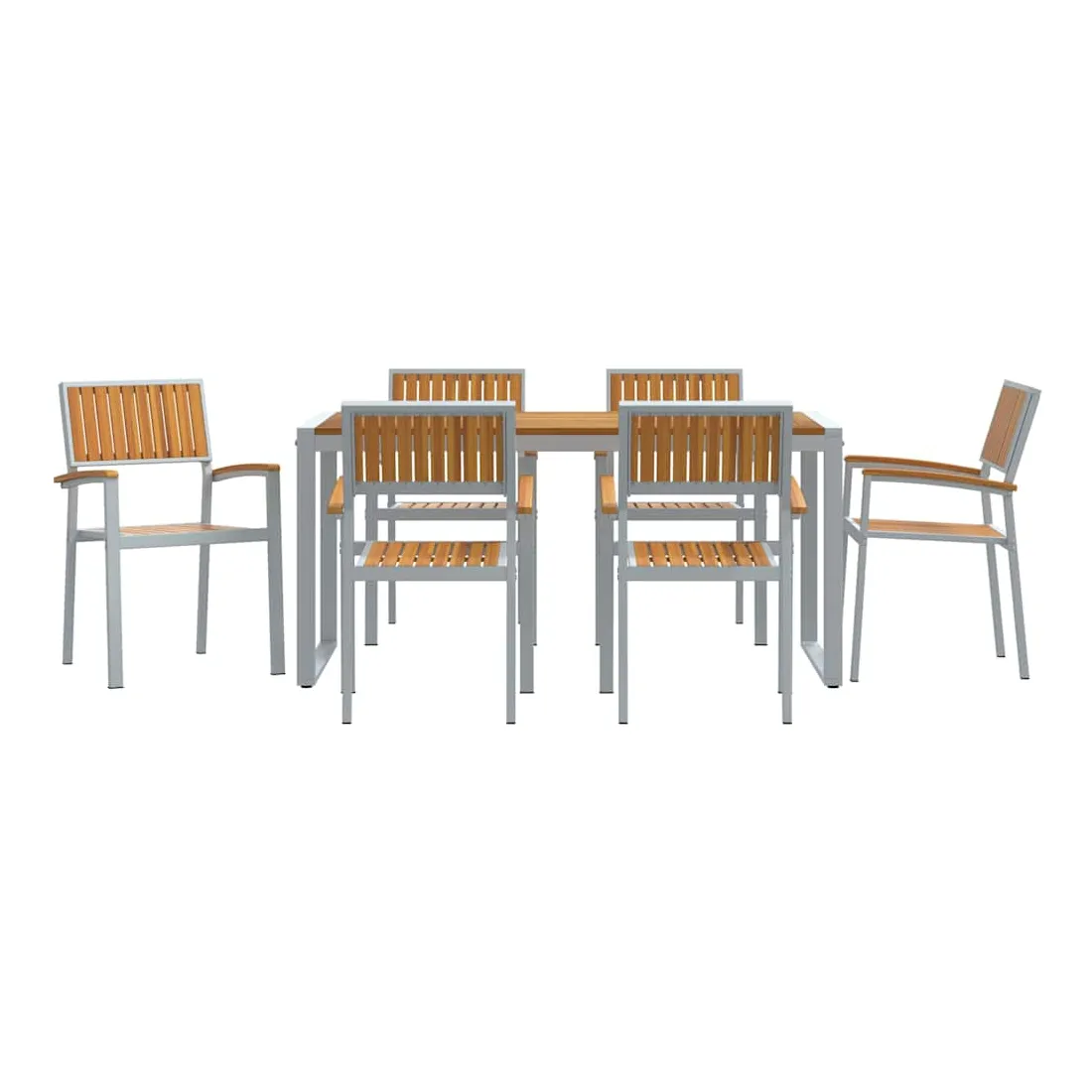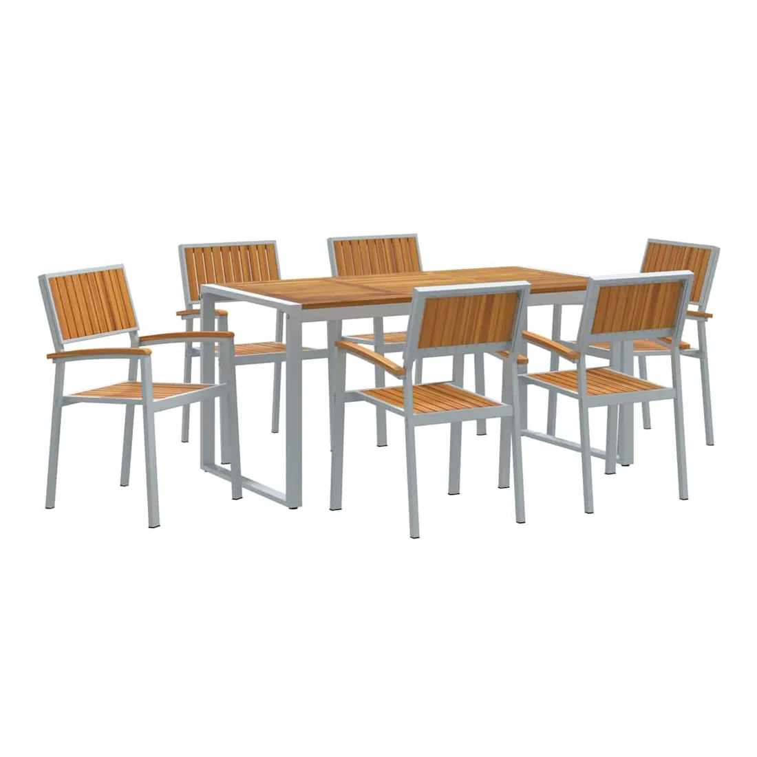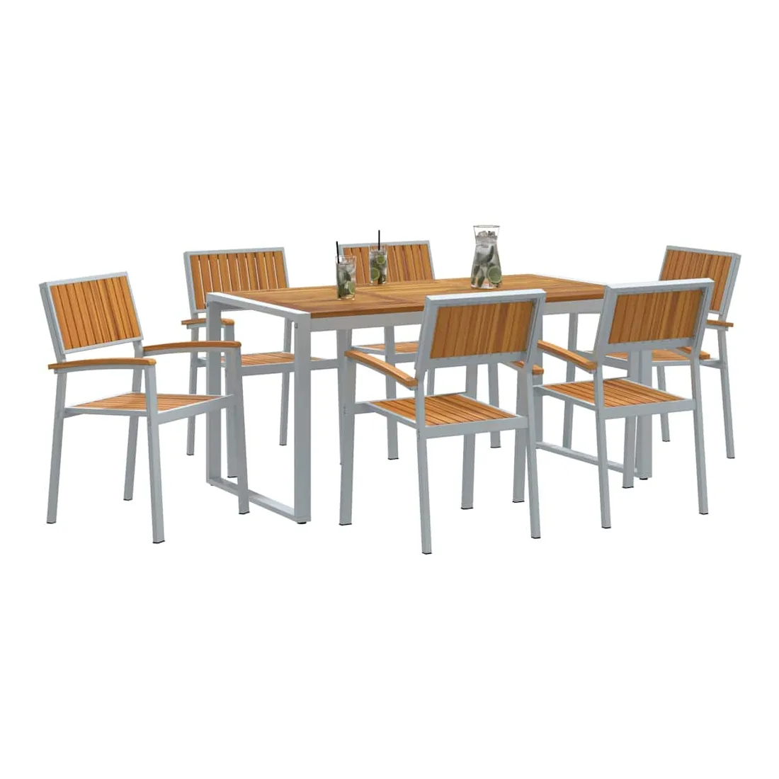 Cet ensemble de salle à manger de jardin moderne dépasse les attentes avec son design élégant et sa grande fonctionnalité, parfait pour les jardins et terrasses. Le mélange de bois d'acacia massif et d'acier incarne un style moderne, offrant un meuble chic pour des repas dehors, des soirées en famille ou des moments conviviaux. Conçu pour s'adapter à tous les jardins, il se marie aussi bien aux espaces verts que aux styles minimalistes, attirant ceux qui aiment les lignes simples et pratiques. Bois d'acacia massif : Ce matériau de choix donne du caractère et du charme à cet ensemble, tout en résistant bien aux intempéries, parfait pour manger dehors. Ses belles teintes s'associent facilement à tous les styles de jardin. Pieds en acier : Les pieds robustes assurent stabilité sur tous types de surfaces, que ce soit sur l'herbe ou le carrelage. Cela donne une allure épurée et moderne à l'ensemble, tout en restant solide même lors de grands repas ou barbecues. Forme rectangulaire : Pensée pour la convivialité, la forme rectangulaire facilite les conversations et les repas en groupe. Elle se fond bien dans des jardins ou terrasses structurés, maximisant l'espace sans renoncer au style. Composants inclus : Cet ensemble chic inclut des dossiers et accoudoirs en bois d'acacia massif. Ils offrent un bon soutien ergonomique pour un confort prolongé. Le dos bien fini montre une belle attention aux détails. Instructions d'entretien : Garder l'ensemble en bon état est simple : un coup de chiffon sec pour la poussière suffit. Protège-le des intempéries pour qu'il dure longtemps, et tu pourras en profiter pendant des années.