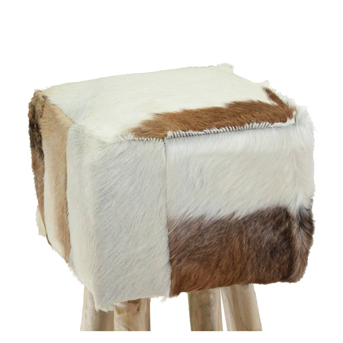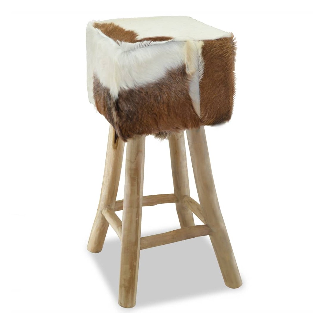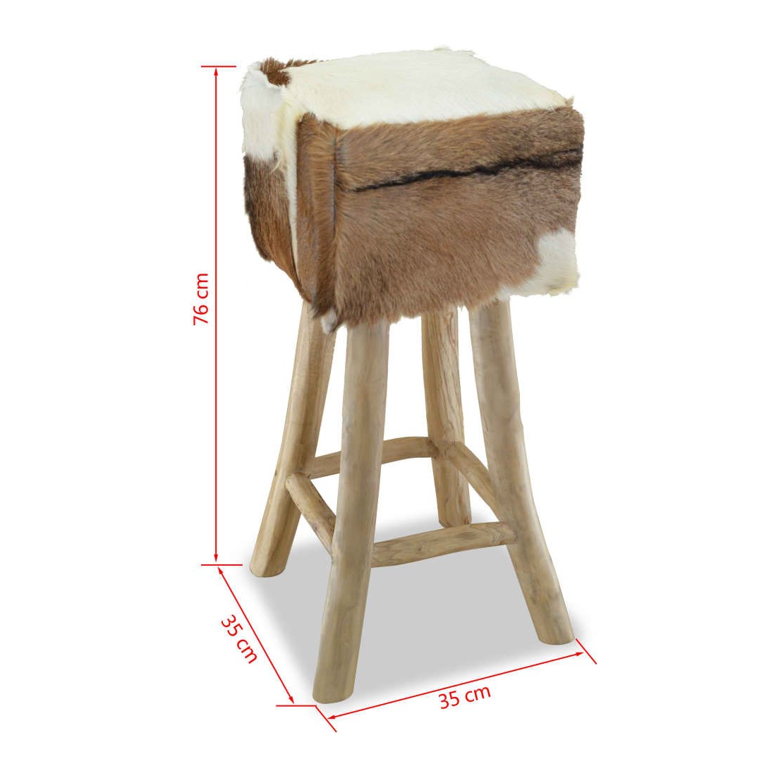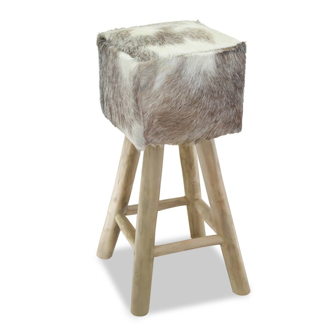 Ce tabouret de bar en cuir de chèvre véritable a un design unique et saisissant et ajoutera une touche de charme rustique aux restaurants ou aux bars, mais aussi à votre salon ou salle à manger à la maison. Le tabouret de bar a un cadre solide en teck, le rendant stable et très durable. Le siège est recouvert de cuir de chèvre 100 % véritable, résistant, durable et flexible, avec le motif de cuir de chèvre. Le cuir de chèvre poilu est doux au toucher et confortable. Le beau motif en cuir naturel rend chacune de nos chaises de bar unique et légèrement différente de la suivante. Grâce au rembourrage doux dans le siège, vous apprécierez le plus grand confort d'assise. Les pieds dans une couleur de bois naturel s'ajoutent à l'aspect rustique du tabouret. Remarque : Les couleurs et les motifs varient d'une pièce à l'autre. La livraison est aléatoire.