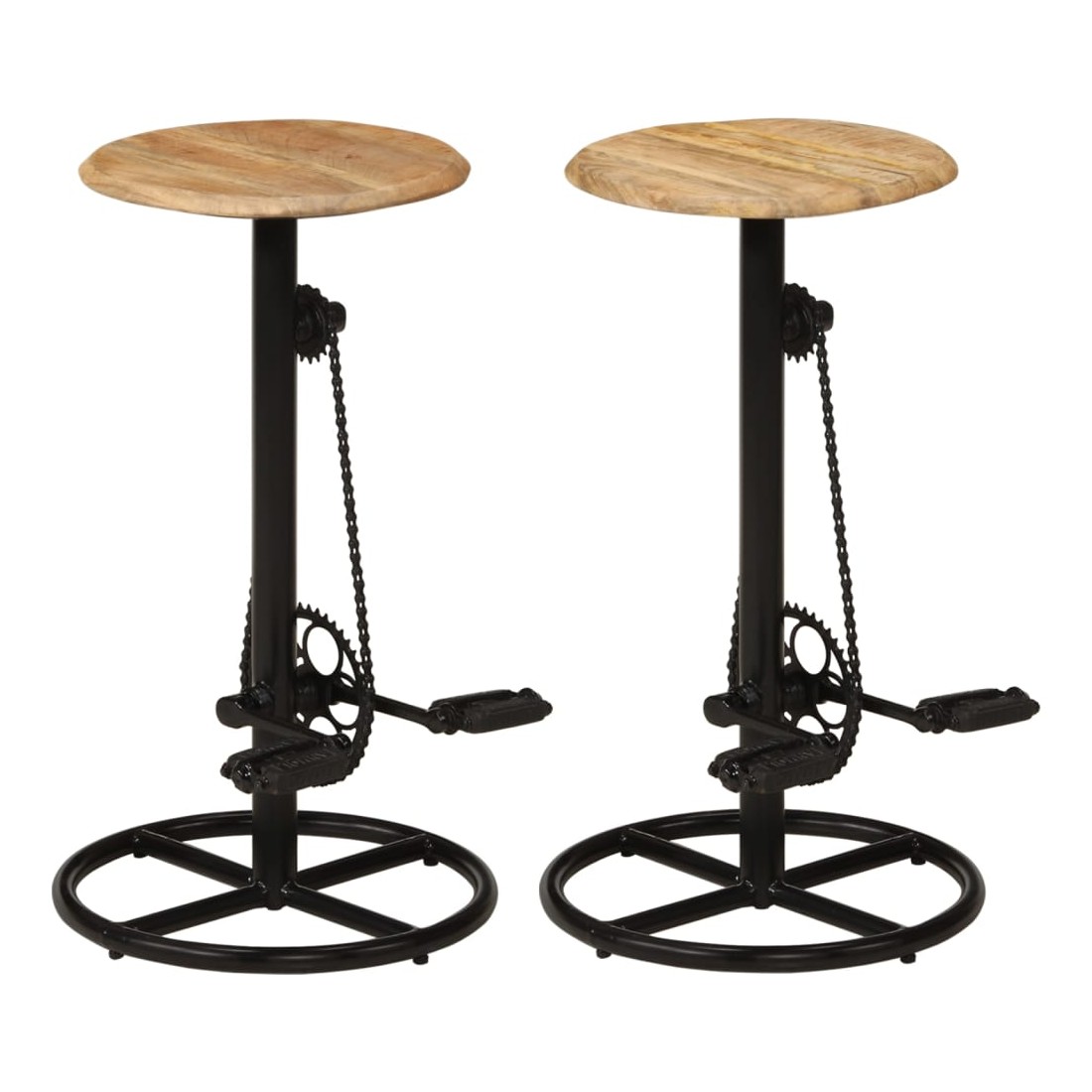 Cet ensemble de 2 tabourets de bar sera un supplément indémodable à la décoration de votre cuisine et salle à manger. Bois de manguier massif : les tabourets de bar sont faits de bois de manguier massif et d'acier et sont très stables et durables. Chaque étape du processus de fabrication est réalisée avec le plus grand soin, que ce soit la recombinaison, le polissage, la peinture ou le laquage.Conception du repose-pieds : les chaises de bar sont dotées de repose-pieds qui ressemblent aux pédales de vélo et contribuent au confort d'assise de l'ensemble ainsi qu'à son style industriel.Facile à nettoyer : les tabourets sont faciles à nettoyer avec un chiffon humide. Bon à savoir :Les couleurs et les grains de bois peuvent varier d'une pièce à l'autre, ce qui rend chaque pièce unique et légèrement différente l'une de l'autre. La livraison est aléatoire, ce qui garantit l'exclusivité et l'individualité de votre produit.
