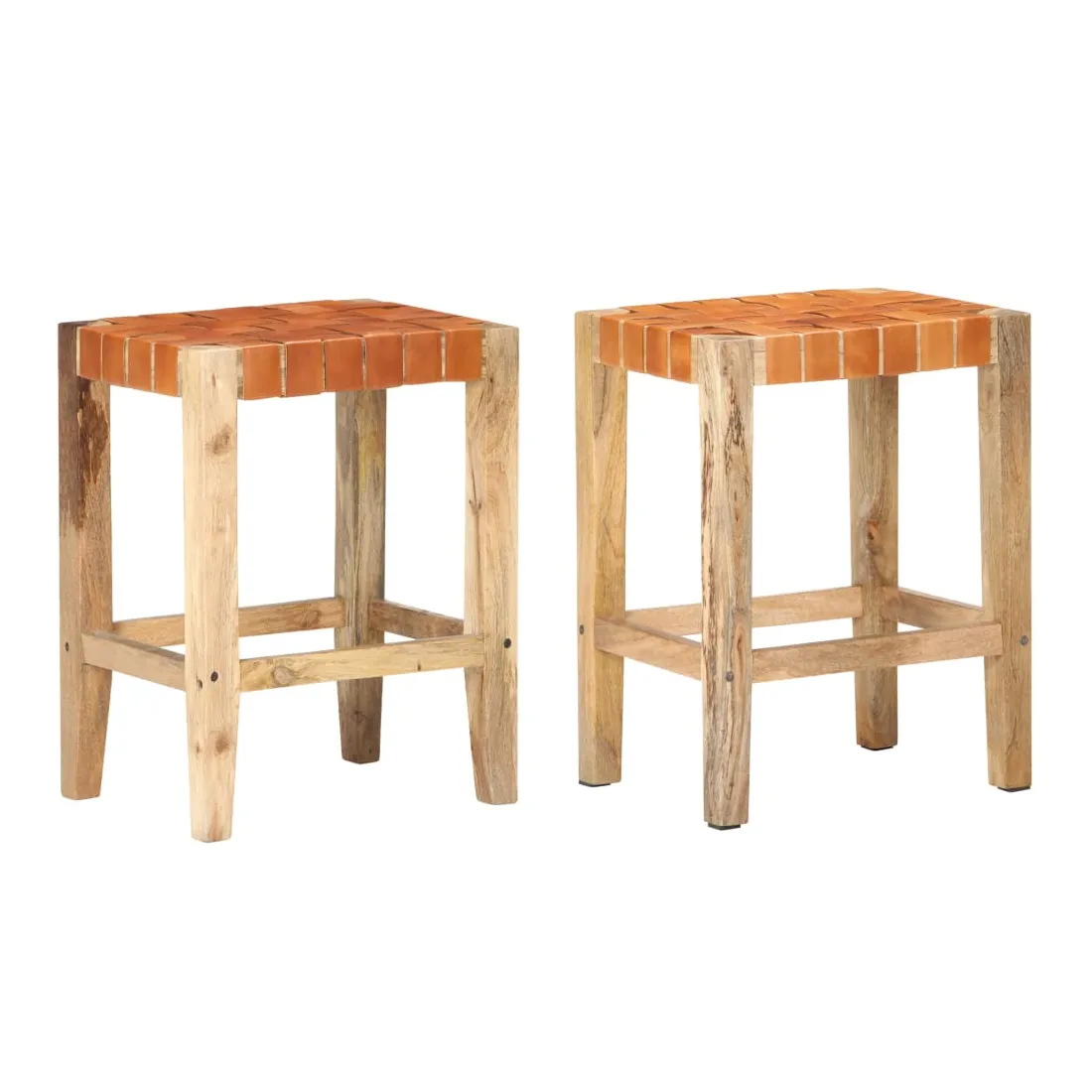 vidaXLCes tabourets de bar doux et confortables compléteront n’importe quel intérieur avec leur design unique et saisissant. Fabriquées en cuir véritable combiné avec du bois de manguier massif, ces chaises de bar sont durables et confortables. Les sièges sont doux au toucher et offrent une expérience d'assise confortable. Le cadre en bois ajoute à leur robustesse et les tabourets sont faciles à déplacer pour convenir à n’importe quel décor. Veuillez noter : les magnifiques veines du bois rendent chacune de ces chaises de bar unique et légèrement différente l'une de l'autre ; la livraison est aléatoire.