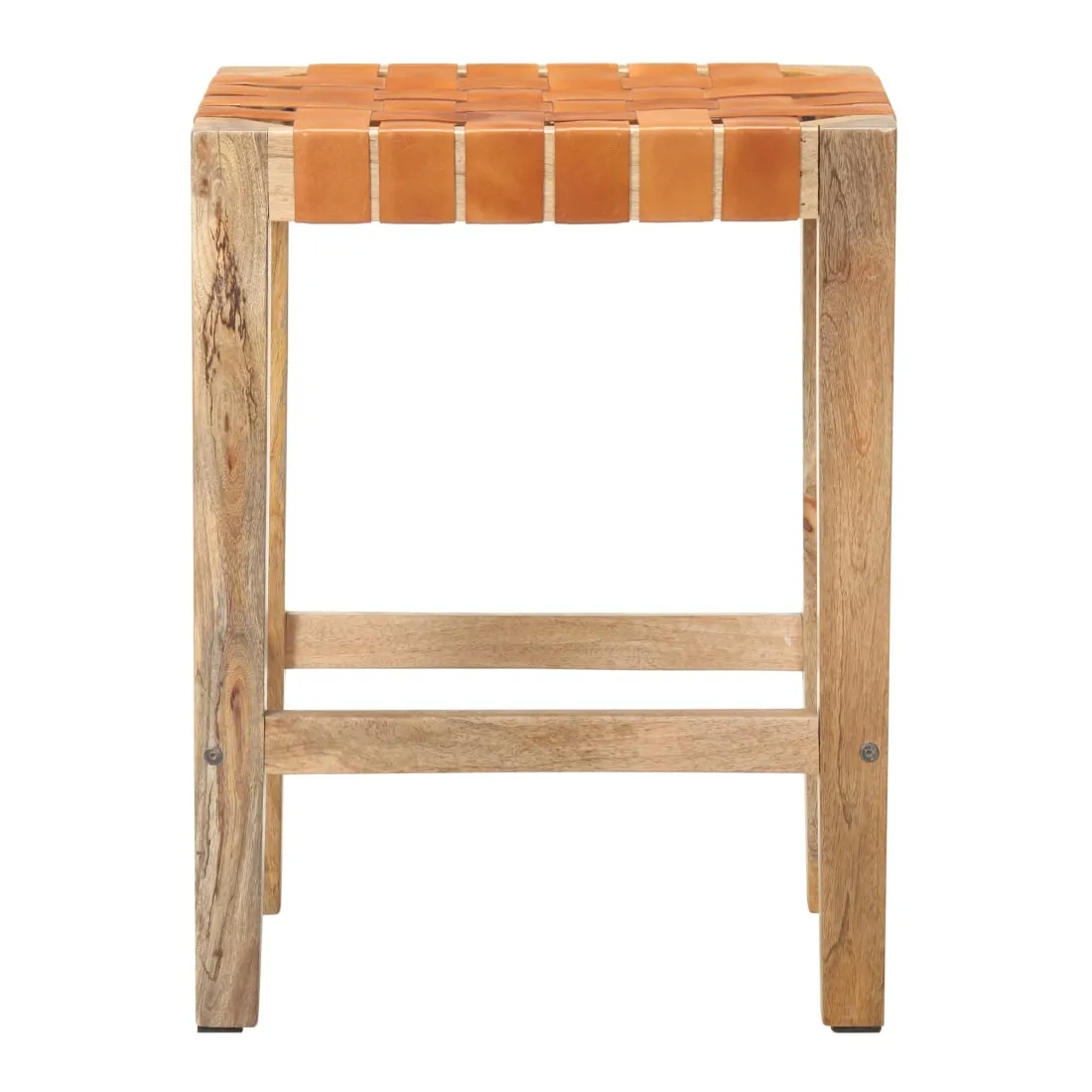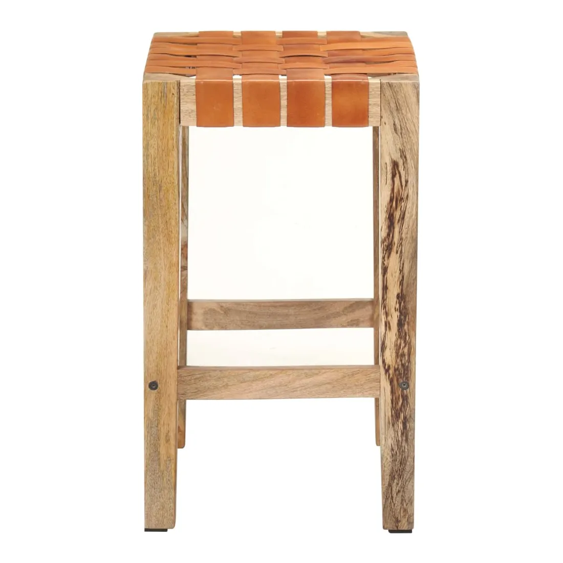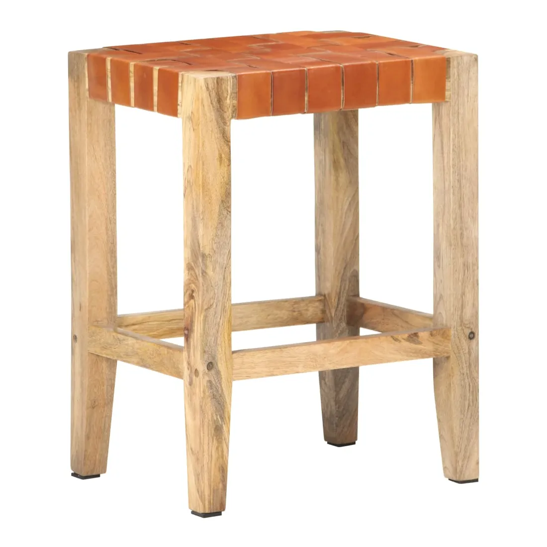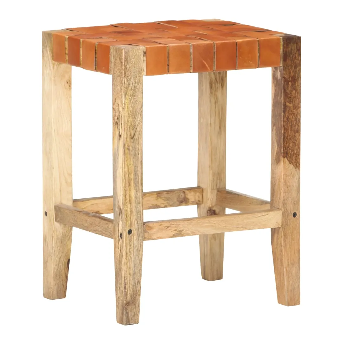 - Matériau : cuir véritable avec la finition marron-brun roux, bois de manguier massif avec une finition naturelle