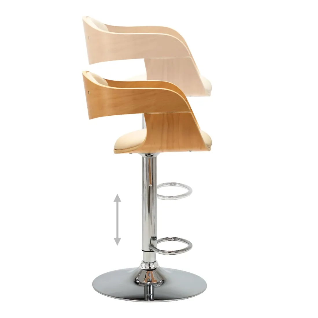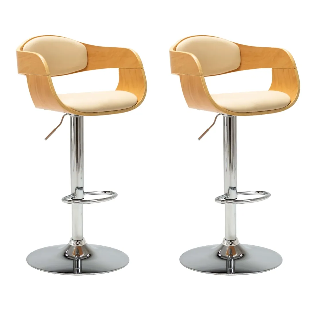 Avec un design soigné mais intemporel, l'ensemble de 2 chaises de bar vous apportera sûrement le plus grand confort d'assise. Les chaises sont rembourrées de similicuir facile à nettoyer pour un confort optimal. Le cadre en bois courbé ajoute une beauté et un style uniques. La base en métal chromé offre une grande robustesse tandis que le repose-pied intégré ajoute du plaisir supplémentaire à l'assise. La conception ergonomique rend les chaises très confortables pour vous asseoir pendant des heures. De plus, grâce au mécanisme de soulèvement à gaz, ces chaises de bar peuvent être ajustées en hauteur et constituent un supplément parfait à tout bar fonctionnel ou espace de salle à manger. La livraison comprend 2 chaises de bar.