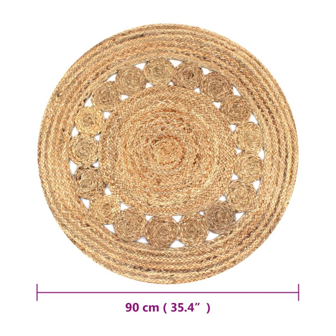 Donnez une touche naturelle à votre intérieur avec notre tapis de jute tressé ! Le tapis rond est tissé à la main par des artisans qualifiés avec un savoir-faire exceptionnel et avec sa texture attrayante et son design rétro, il conviendra parfaitement à la décoration de votre maison. Le jute est un matériau naturellement solide, doux au toucher, mais durable et nécessitant peu d'entretien. Veuillez noter que chaque tapis est unique ; des variations de couleur et de design peuvent se produire en raison de la nature artisanale du produit ; la livraison est aléatoire. Remarque : nos tapis sont emballés en rouleaux pour un transport facile. Veuillez permettre au produit un certain temps pour devenir parfaitement droit et plat.