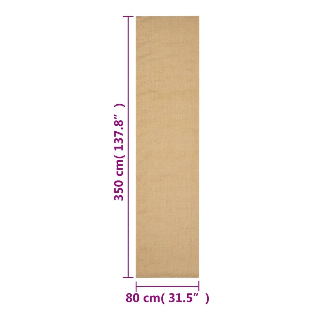 Ce tapis en sisal, offrant une magnifique texture, est un excellent choix pour presque toutes les pièces de votre maison. Matériau haut de gamme : ce tapis en sisal est composé à 100 % de sisal, ce qui rend le tapis durable et polyvalent. De plus, le tapis en sisal a un effet extrêmement positif sur le climat intérieur, car il absorbe l'humidité de l'air et la relâche au besoin.Fonction antidérapante : le support antidérapant maintient le tapis de sol en place et réduit la probabilité de glissement, ce qui rend le tapis adapté à diverses surfaces.Facile à entretenir : grâce à la propriété naturelle du sisal, le tapis n'attrape pas trop de poussière ou de saleté. Donc, utiliser un aspirateur périodiquement peut maintenir la beauté originale du tapis d'intérieur. Remarque :Le tapis est emballé en rouleau pour un transport facile. Veuillez laisser un peu de temps au produit pour qu'il devienne parfaitement droit et plat.Ce tapis ne doit pas être placé au soleil ni exposé à une humidité excessive.Si vous ne pouvez pas faire le nettoyage, livrez-le à des professionnels spécialisés.Attention :Ne pas laver, blanchir, sécher en sèche-linge ou repasser.