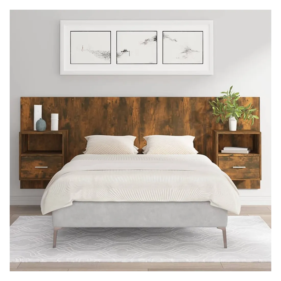 Tête de lit avec armoires Chêne fumé Bois d'ingénierie