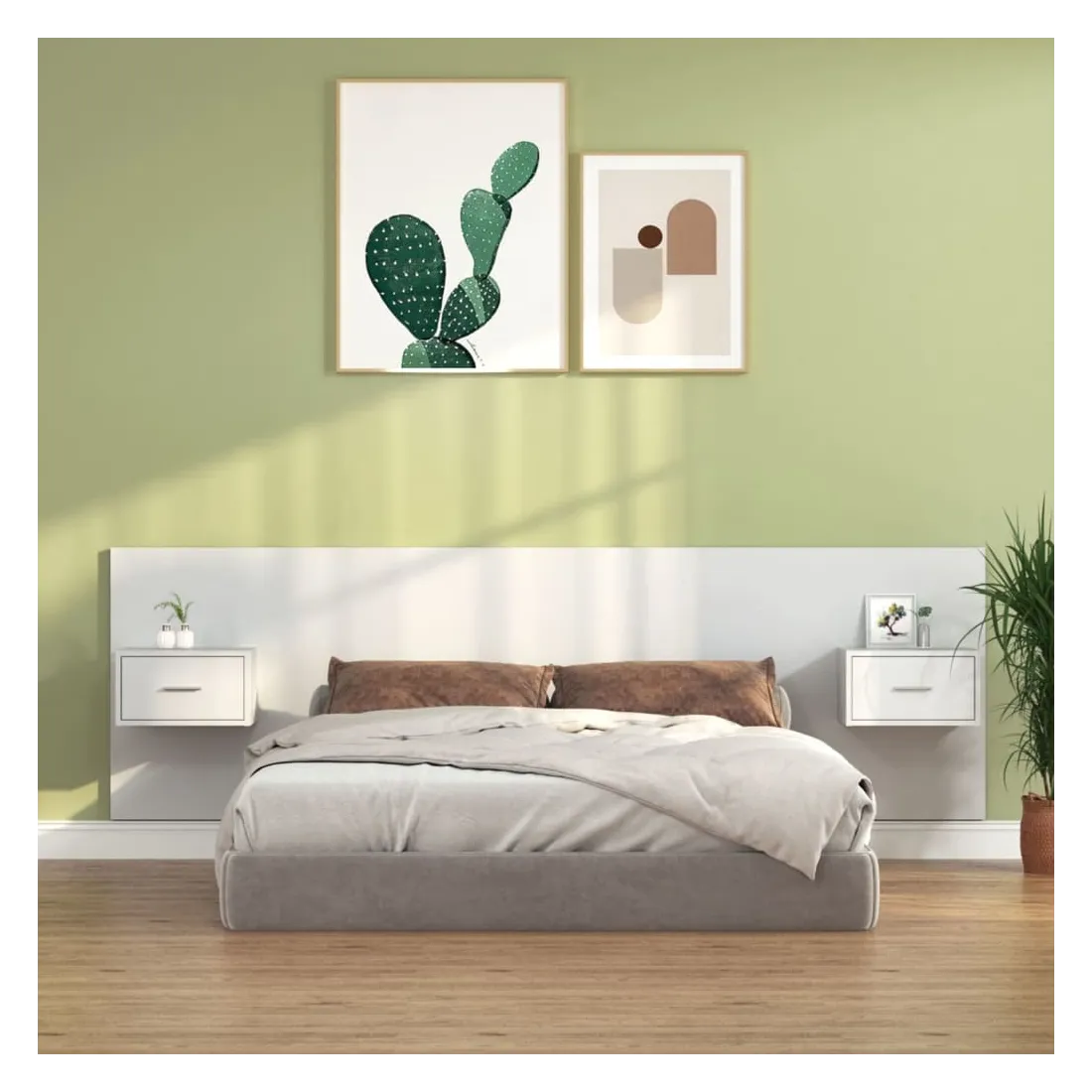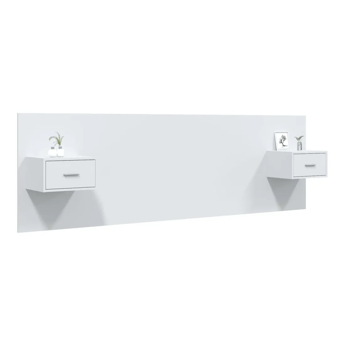 La tête de lit robuste avec armoires, au design classique, donne à votre cadre de lit un aspect complet et convient à toute chambre à coucher. Matériau robuste : le bois d'ingénierie est d'une qualité exceptionnelle avec une surface lisse et présente également résistance, stabilité et résistance à l'humidité.Design mural : les tables de chevet flottantes et la tête de lit peuvent être fixées au mur. De cette façon, vous pouvez maximiser votre espace au sol et garder la zone propre.Espace de rangement : l'unité de chevet dispose d'un espace de rangement spacieux qui vous permet de garder vos affaires organisées. ATTENTION :Les vis et les chevilles pour l'intérieur du mur ne sont pas incluses. Recherchez et utilisez des vis et des chevilles adaptées à vos murs. Si vous n'êtes pas sûr, demandez conseil à un professionnel. Lisez et suivez attentivement chaque étape des instructions.