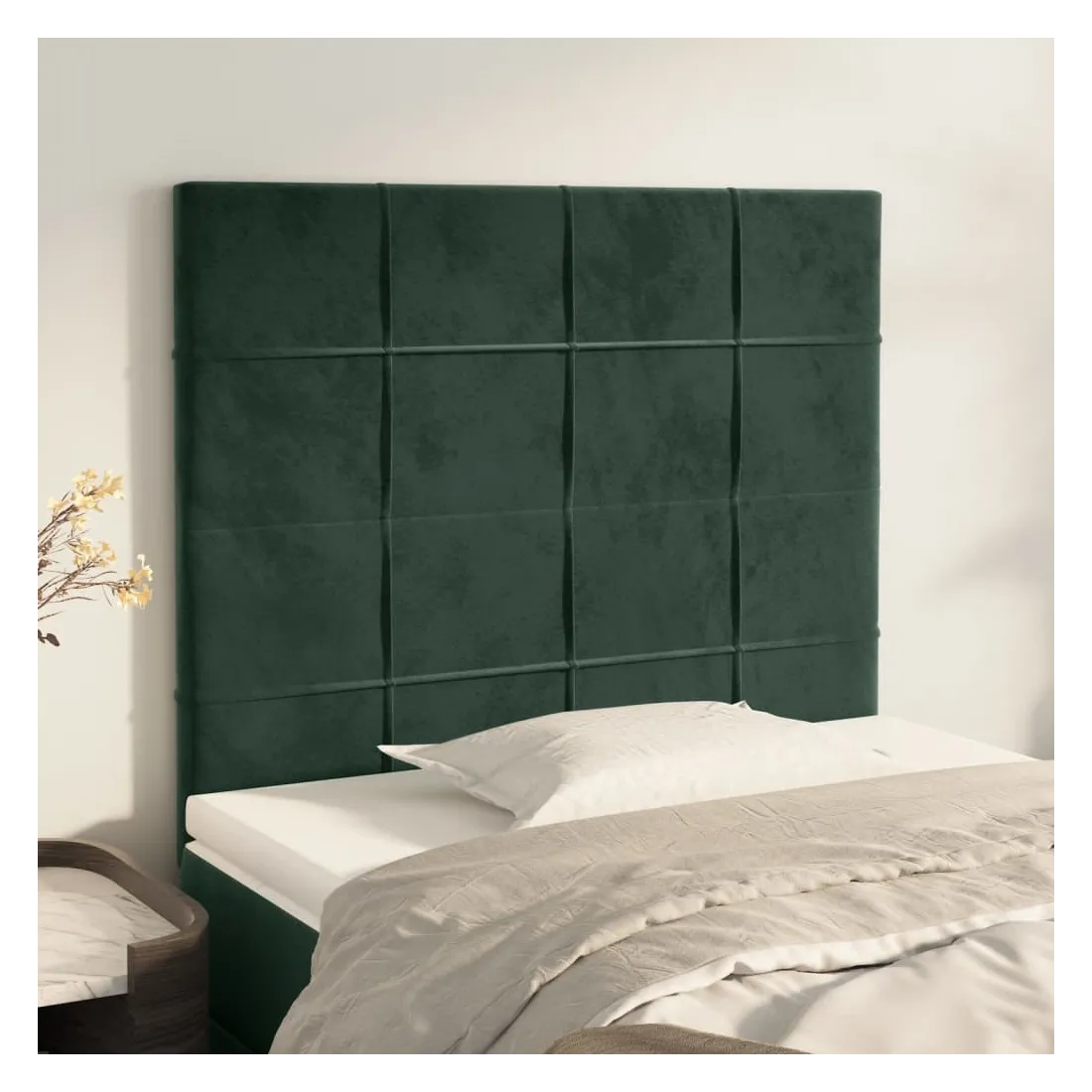 Cette tête de lit classique au design élégant complètera parfaitement votre cadre de lit et conviendra à toutes les chambres. Velours doux : Le velours est un tissu doux et luxueux qui se distingue par ses fibres denses et uniformément coupées et lisses. Le velours offre un toucher doux et agréable.Pieds robustes et stables : Les pieds en bois assurent robustesse et stabilité.Hauteur réglable : La tête de lit est réglable en hauteur selon vos préférences.Excellent soutien : La tête de lit vous offre un excellent soutien dorsal lorsque vous êtes assis dans votre lit pour lire ou regarder la télévision. Remarque :La livraison comprend uniquement la tête de lit. Le cadre de lit et le matelas ne sont pas inclus. Vous pouvez consulter notre boutique pour les cadres et matelas assortis.Chaque produit est livré avec un manuel de montage dans la boîte pour un assemblage facile.