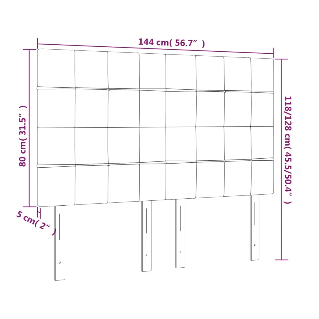 Cette tête de lit classique au design élégant complètera parfaitement votre cadre de lit et conviendra à toutes les chambres. Velours doux : Le velours est un tissu doux et luxueux qui se distingue par ses fibres denses et uniformément coupées et lisses. Le velours offre un toucher doux et agréable.Pieds robustes et stables : Les pieds en bois assurent robustesse et stabilité.Hauteur réglable : La tête de lit est réglable en hauteur selon vos préférences.Excellent soutien : La tête de lit vous offre un excellent soutien dorsal lorsque vous êtes assis dans votre lit pour lire ou regarder la télévision. Remarque :La livraison comprend uniquement la tête de lit. Le cadre de lit et le matelas ne sont pas inclus. Vous pouvez consulter notre boutique pour les cadres et matelas assortis.Chaque produit est livré avec un manuel de montage dans la boîte pour un assemblage facile.