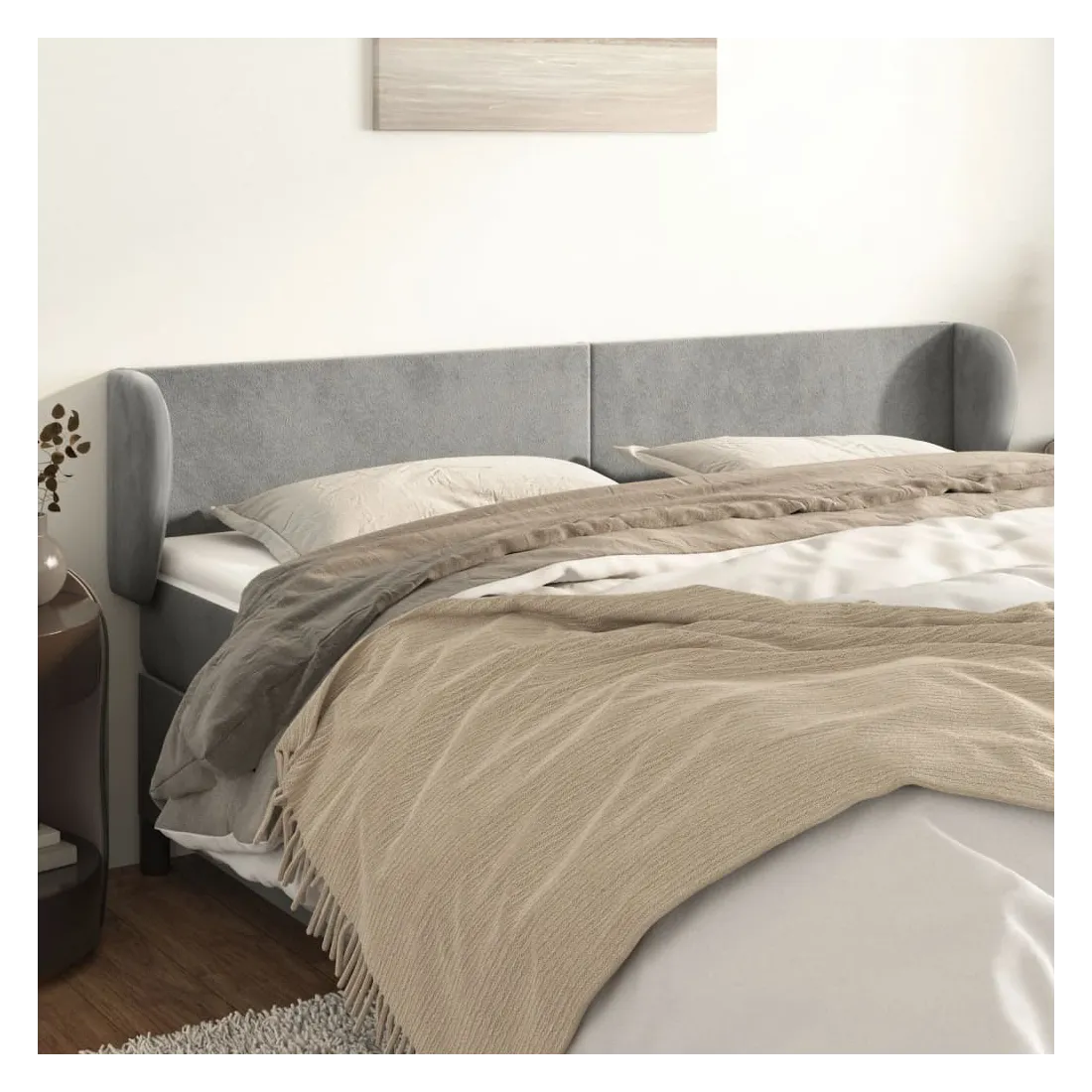 Tête de lit avec oreilles Gris clair 163x23x78/88 cm Velours