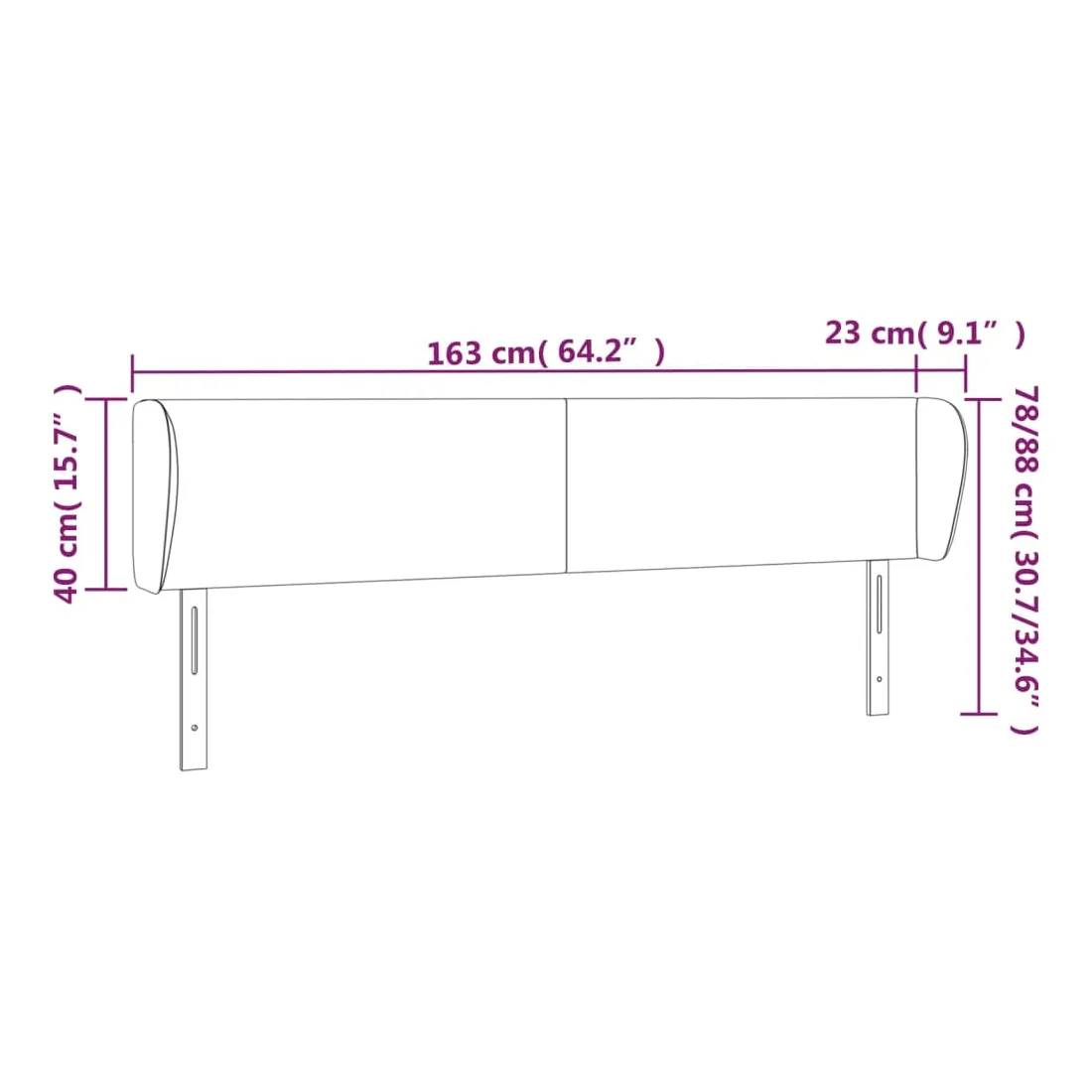Cette tête de lit avec oreilles classique au design élégant donne à votre cadre de lit un aspect complet et convient à toute chambre à coucher. Velours doux : le velours est un tissu doux et luxueux qui se reconnaît à son tas dense de fibres uniformément coupées qui ont une touche lisse. Le tissu en velours présente un toucher doux distinctif, ce qui le rend confortable au toucher.Pieds robustes et stables : les pieds en bois assurent la robustesse et la stabilité.Hauteur réglable : la tête de lit est réglable en hauteur selon vos préférences.Excellent soutien : la tête de lit vous offre un excellent soutien du dos lorsque vous êtes assis dans votre lit pour lire ou regarder la télévision. Remarque :La livraison comprend uniquement la tête de lit. Le cadre de lit et le matelas ne sont pas inclus. Vous pouvez consulter notre boutique pour les cadres et matelas assortis.Chaque produit est livré avec un manuel de montage dans la boîte pour un montage facile.