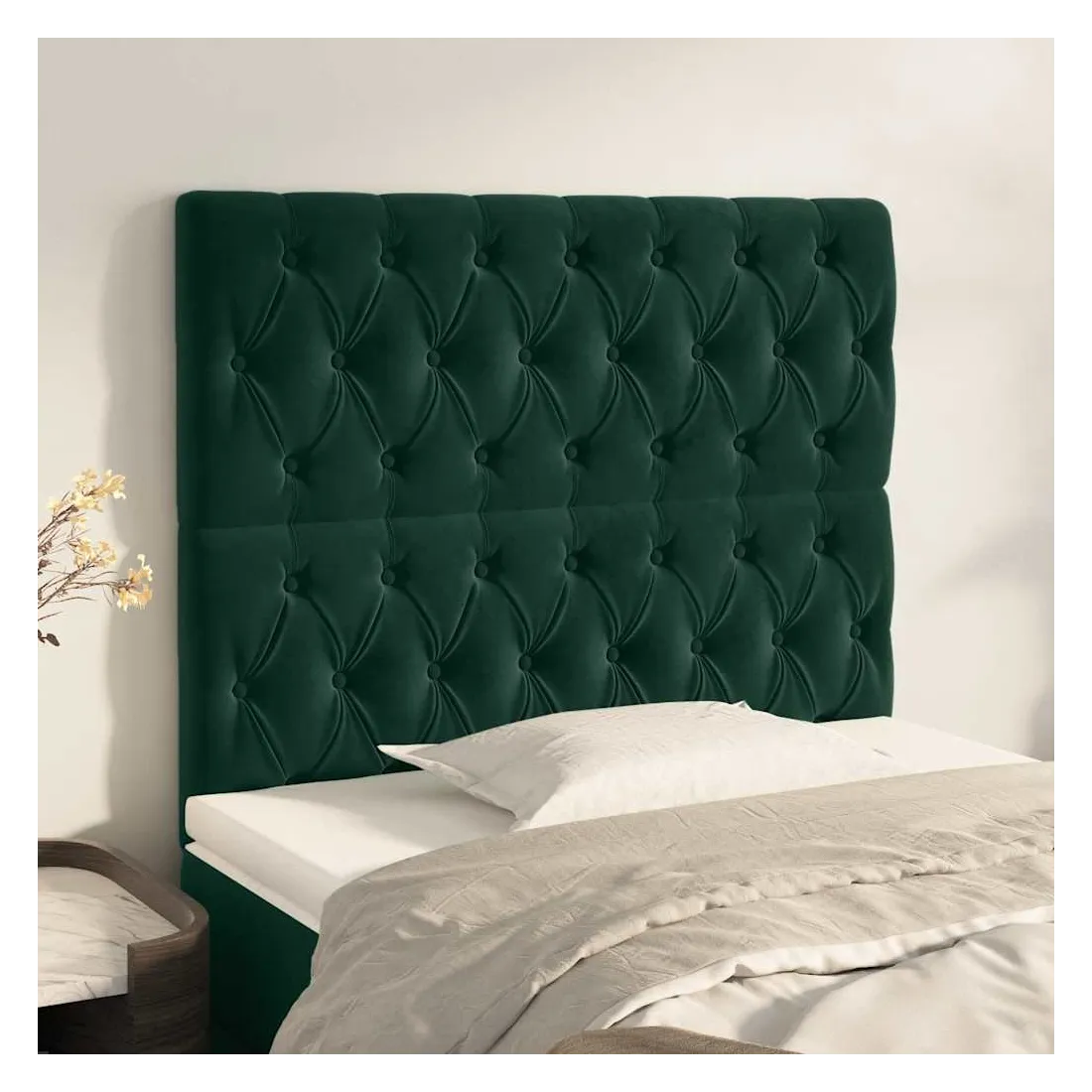 Cette tête de lit classique au design élégant complète parfaitement votre cadre de lit et s'adapte à toutes les chambres. Velours doux : Le velours est un tissu doux et luxueux qui se distingue par ses fibres denses et uniformément coupées et lisses. Le velours offre un toucher doux et agréable.Pieds robustes et stables : Les pieds en bois assurent robustesse et stabilité.Hauteur réglable : La tête de lit est réglable en hauteur selon vos préférences.Excellent soutien : La tête de lit vous offre un excellent soutien dorsal lorsque vous êtes assis dans votre lit pour lire ou regarder la télévision. Remarque :La livraison comprend uniquement la tête de lit. Le cadre de lit et le matelas ne sont pas inclus. Vous pouvez consulter notre boutique pour les cadres et matelas assortis.Chaque produit est livré avec un manuel de montage dans la boîte pour un assemblage facile.
