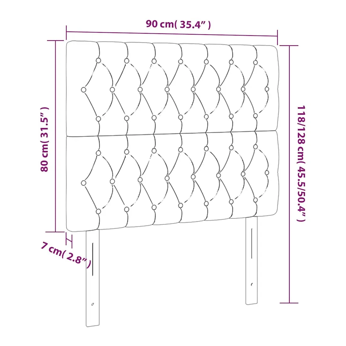 Cette tête de lit classique au design élégant complète parfaitement votre cadre de lit et s'adapte à toutes les chambres. Velours doux : Le velours est un tissu doux et luxueux qui se distingue par ses fibres denses et uniformément coupées et lisses. Le velours offre un toucher doux et agréable. Pieds robustes et stables : Les pieds en bois assurent robustesse et stabilité. Hauteur réglable : La tête de lit est réglable en hauteur selon vos préférences. Excellent soutien : La tête de lit vous offre un excellent soutien dorsal lorsque vous êtes assis dans votre lit pour lire ou regarder la télévision. Remarque : La livraison comprend uniquement la tête de lit. Le cadre de lit et le matelas ne sont pas inclus. Vous pouvez consulter notre boutique pour les cadres et matelas assortis. Chaq