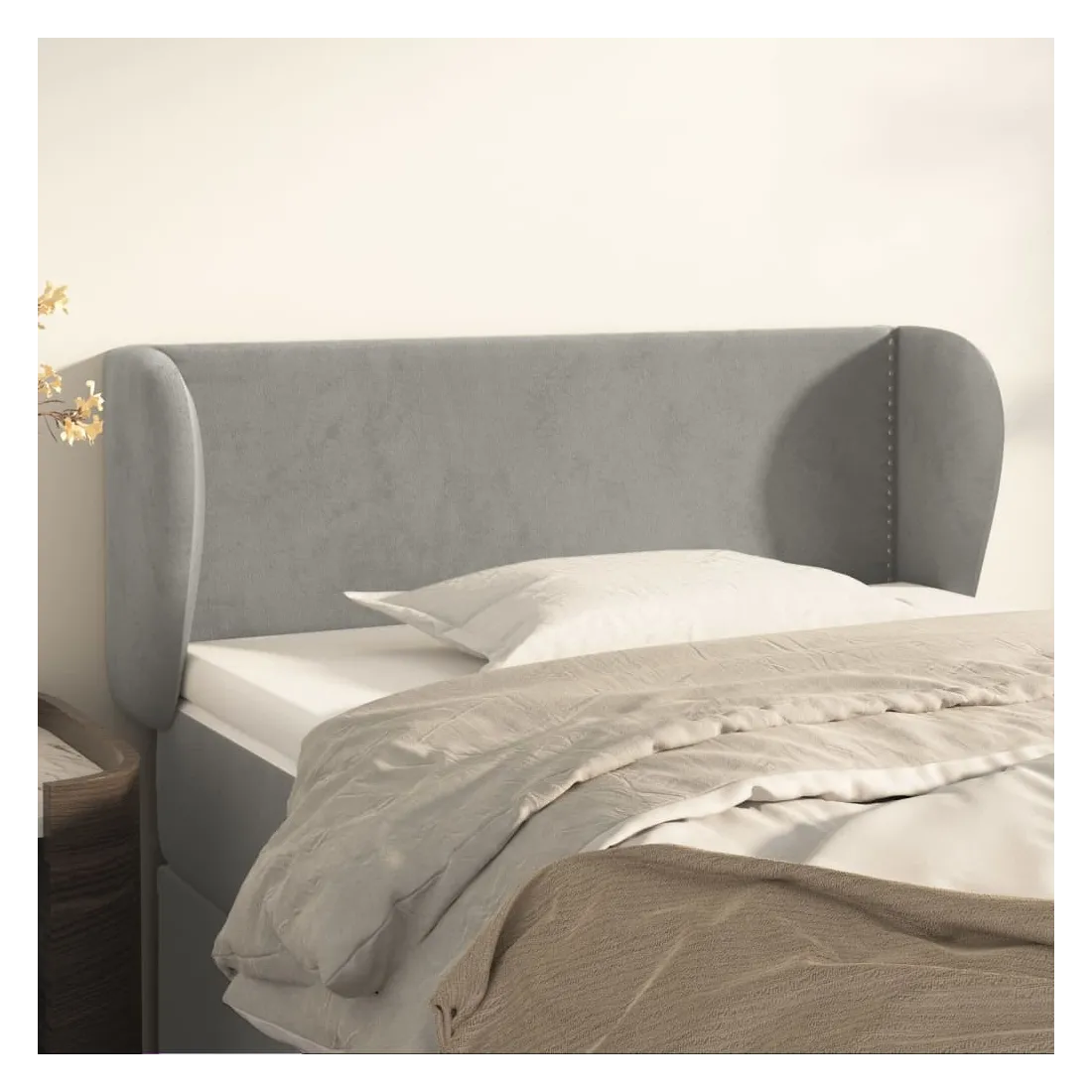 Cette tête de lit avec oreilles classique au design élégant donne à votre cadre de lit un aspect complet et convient à toute chambre à coucher. Velours doux : le velours est un tissu doux et luxueux qui se reconnaît à son tas dense de fibres uniformément coupées qui ont une touche lisse. Le tissu en velours présente un toucher doux distinctif, ce qui le rend confortable au toucher.Pieds robustes et stables : les pieds en bois assurent la robustesse et la stabilité.Hauteur réglable : la tête de lit est réglable en hauteur selon vos préférences.Excellent soutien : la tête de lit vous offre un excellent soutien du dos lorsque vous êtes assis dans votre lit pour lire ou regarder la télévision.Design élégant : les rivets le long des bords augmentent la beauté classique de la tête de lit rembourrée. Remarque :La livraison comprend uniquement la tête de lit. Le cadre de lit et le matelas ne sont pas inclus. Vous pouvez consulter notre boutique pour les cadres et matelas assortis.Chaque produit est livré avec un manuel de montage dans la boîte pour un montage facile.