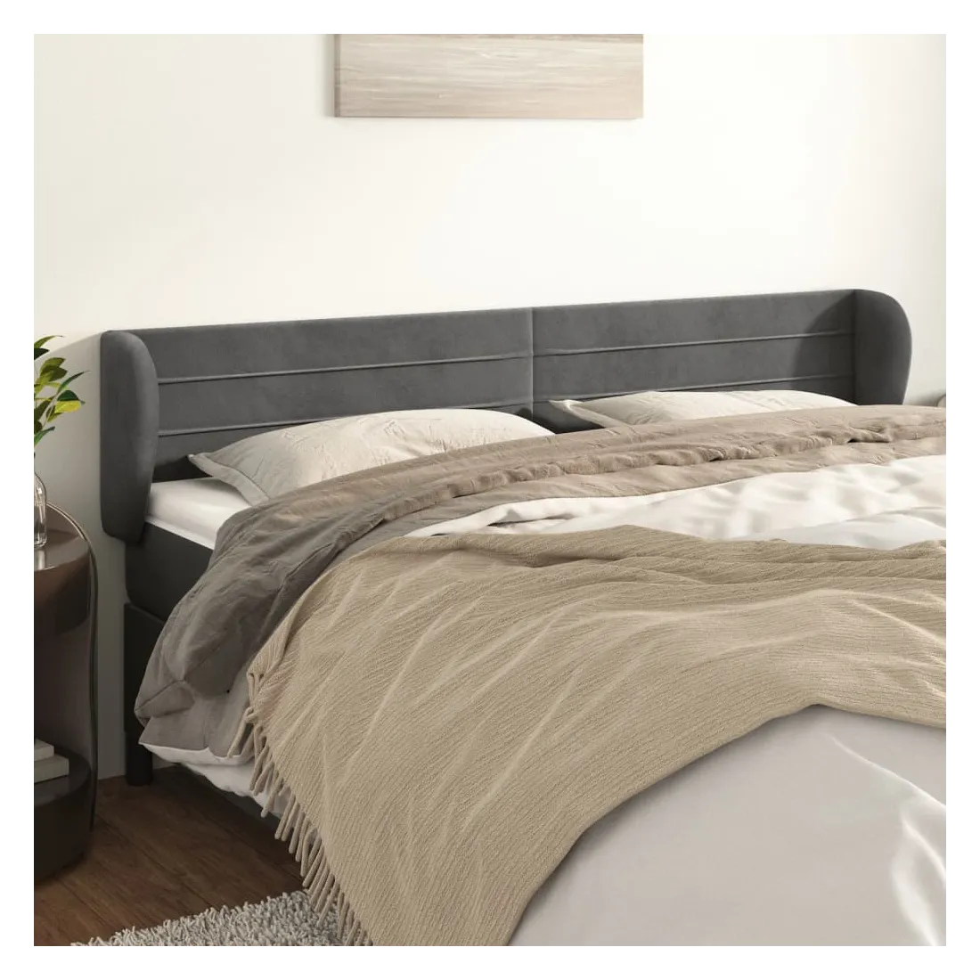 Tête de lit avec oreilles Gris foncé 163x23x78/88 cm Velours