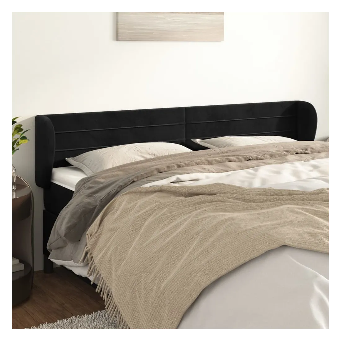 Tête de lit avec oreilles Noir 163x23x78/88 cm Velours